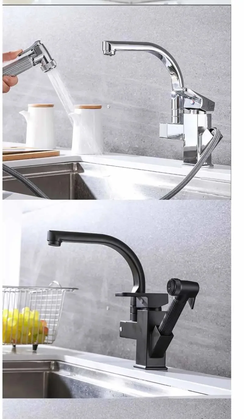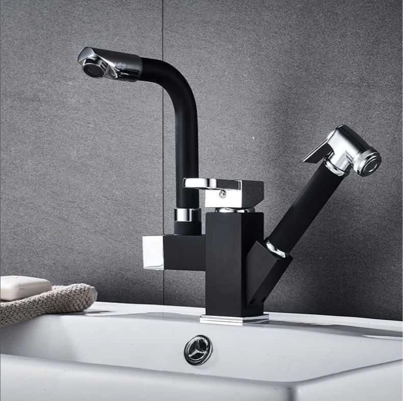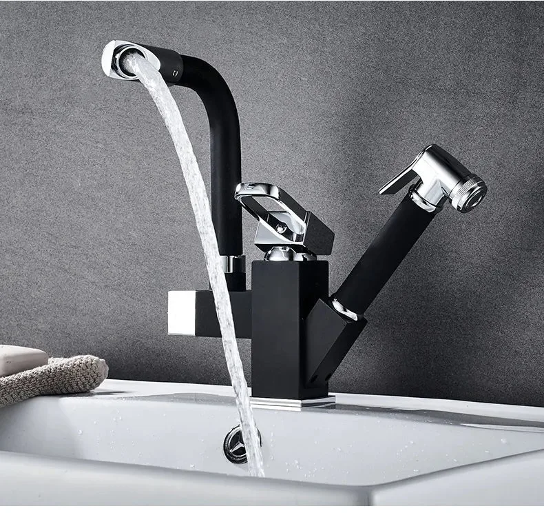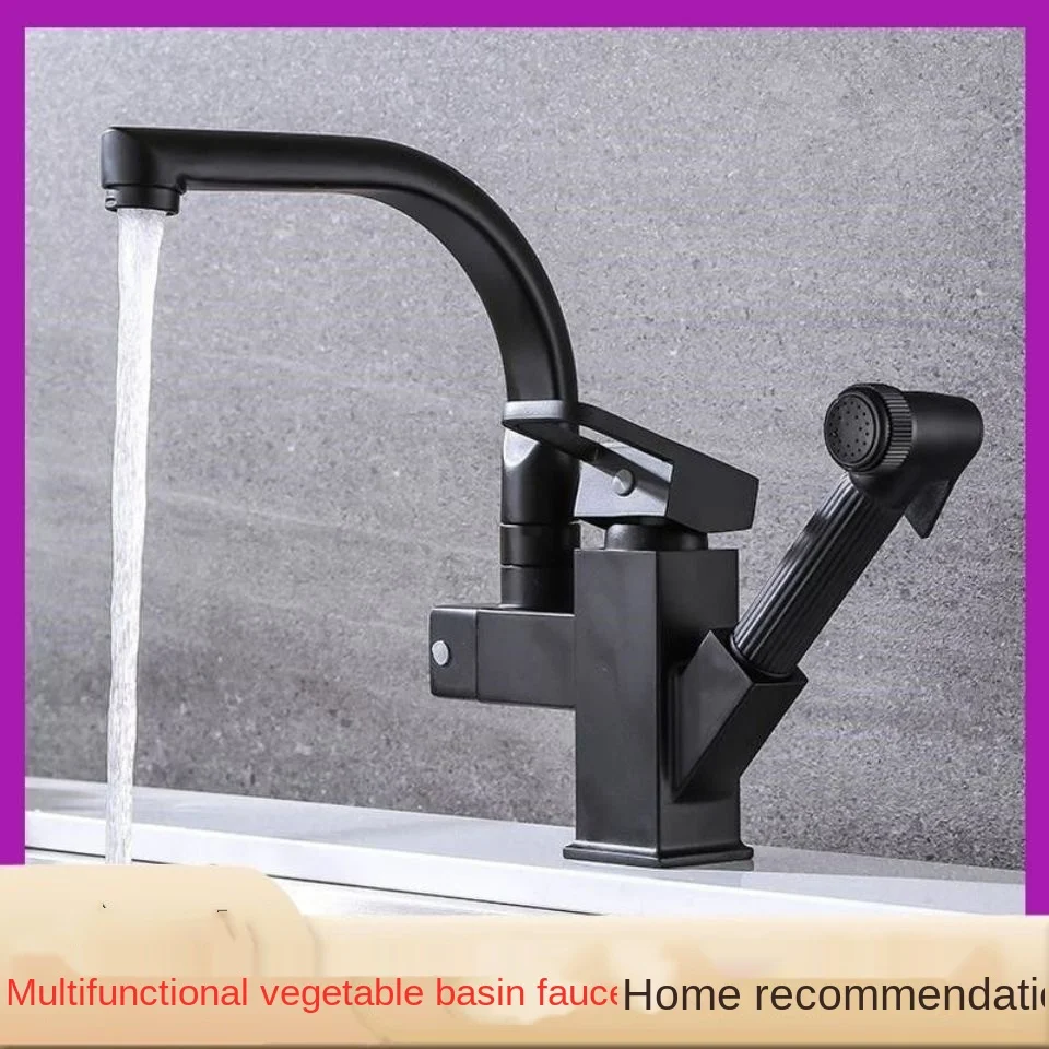 Черная раковина с одной ручкой и одним отверстием, раковина для овощей, Поворотный Смеситель для туалета, кухни с распылителем Смеситель для мойки