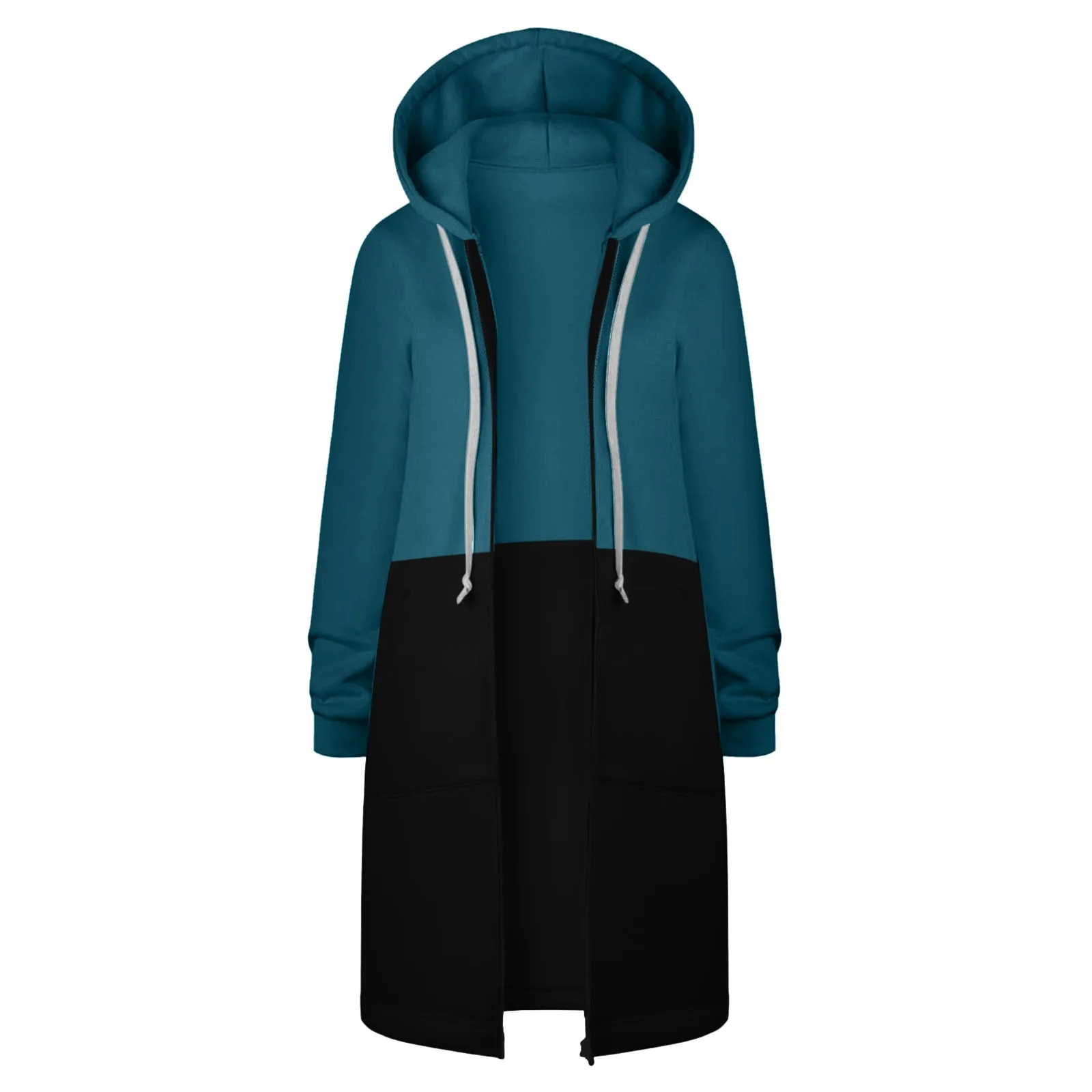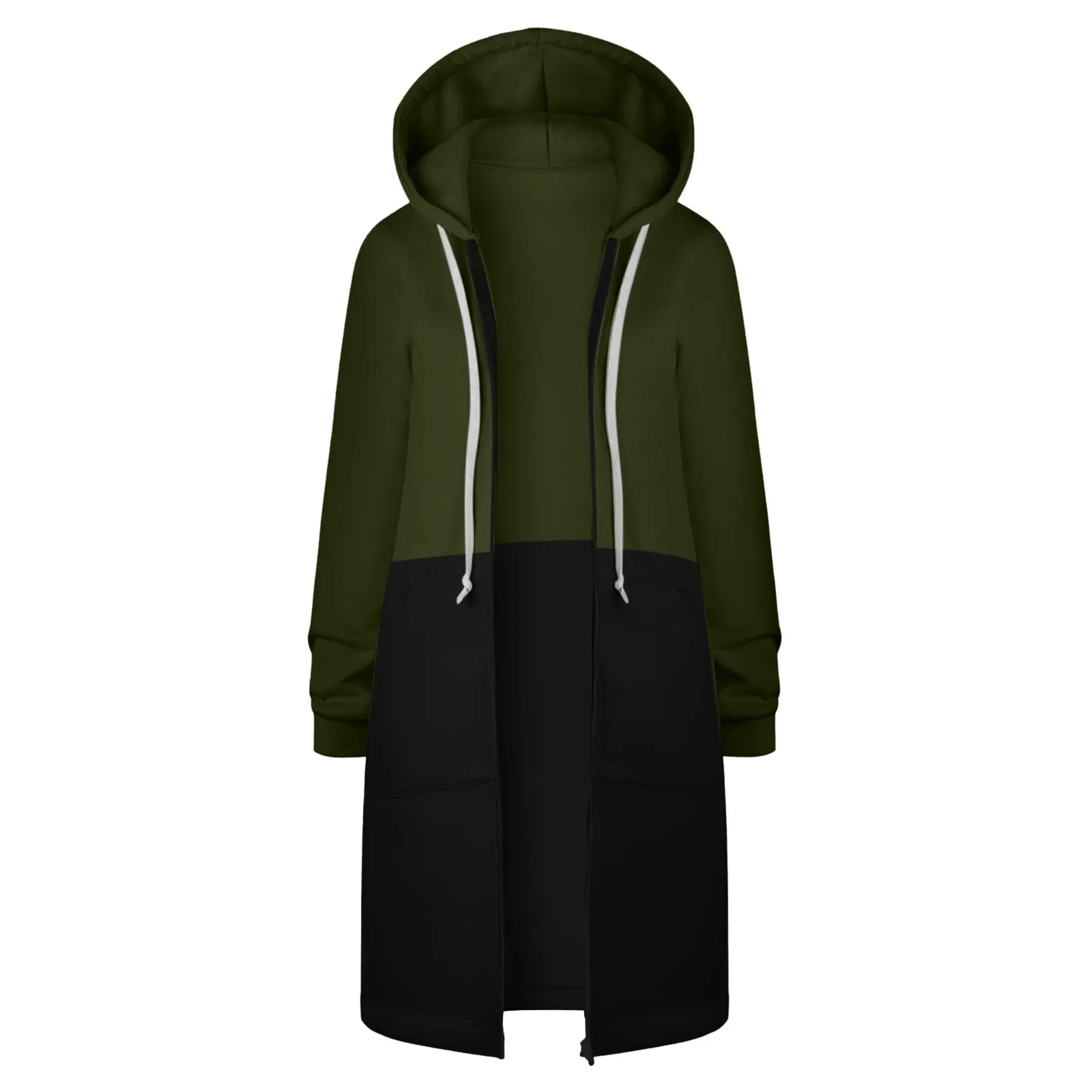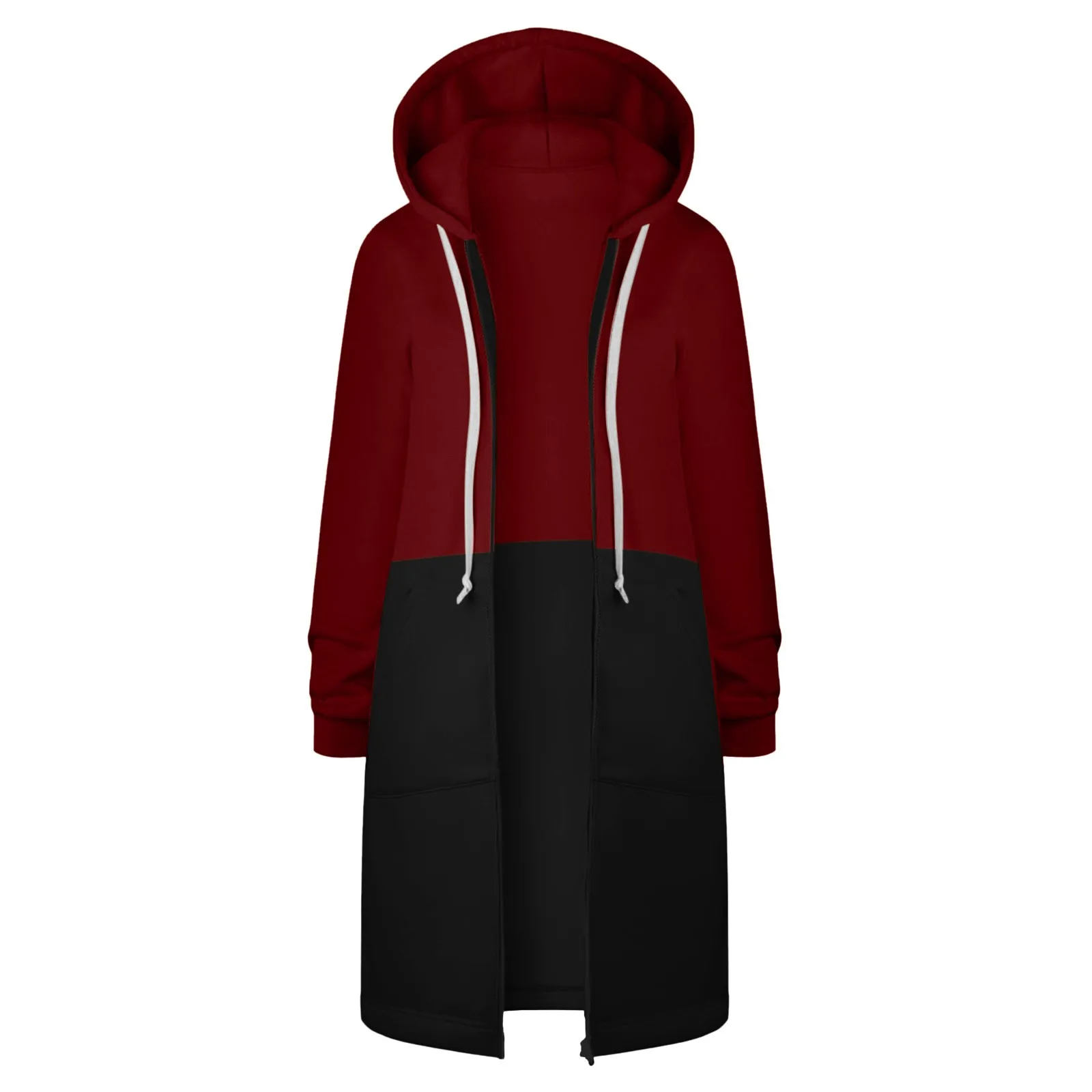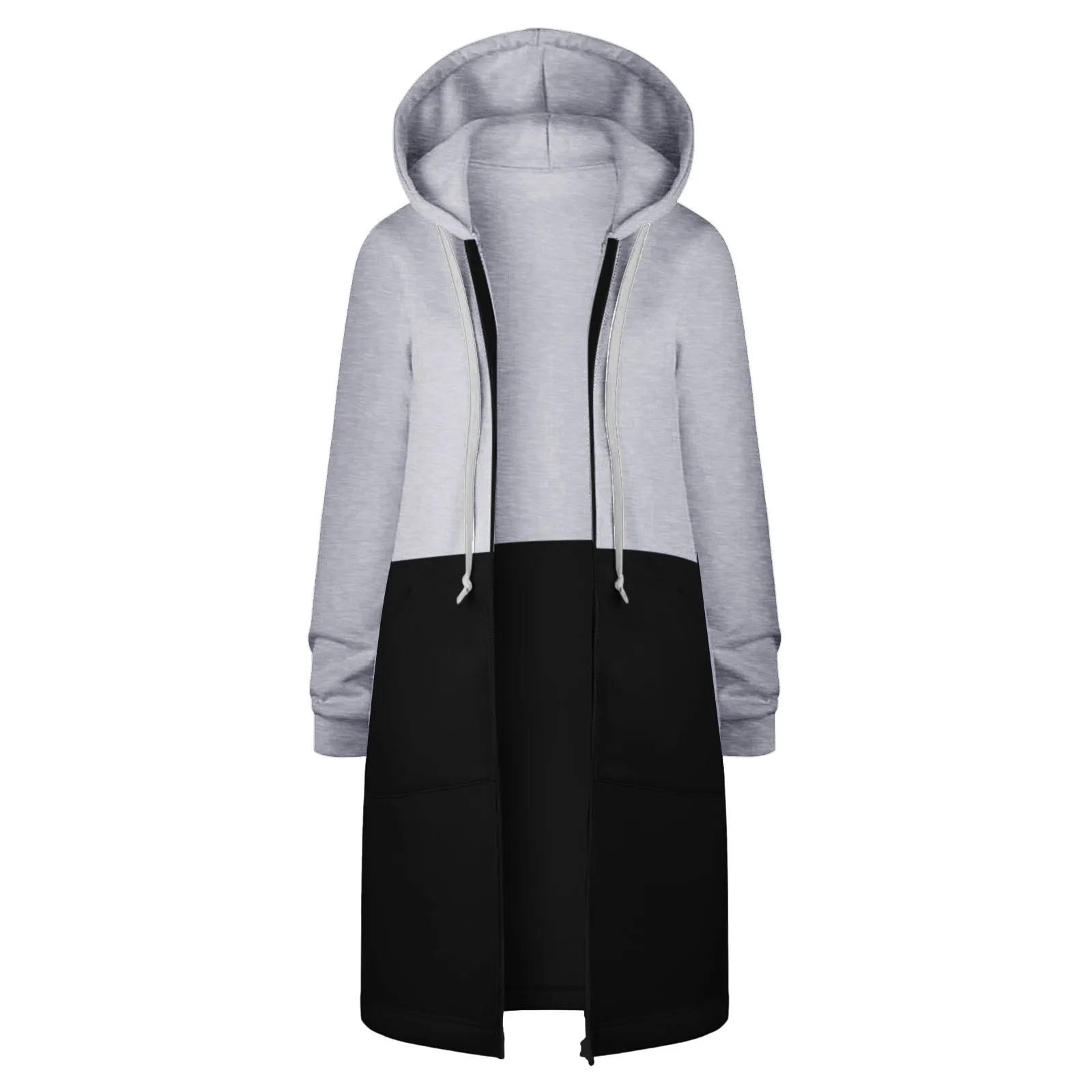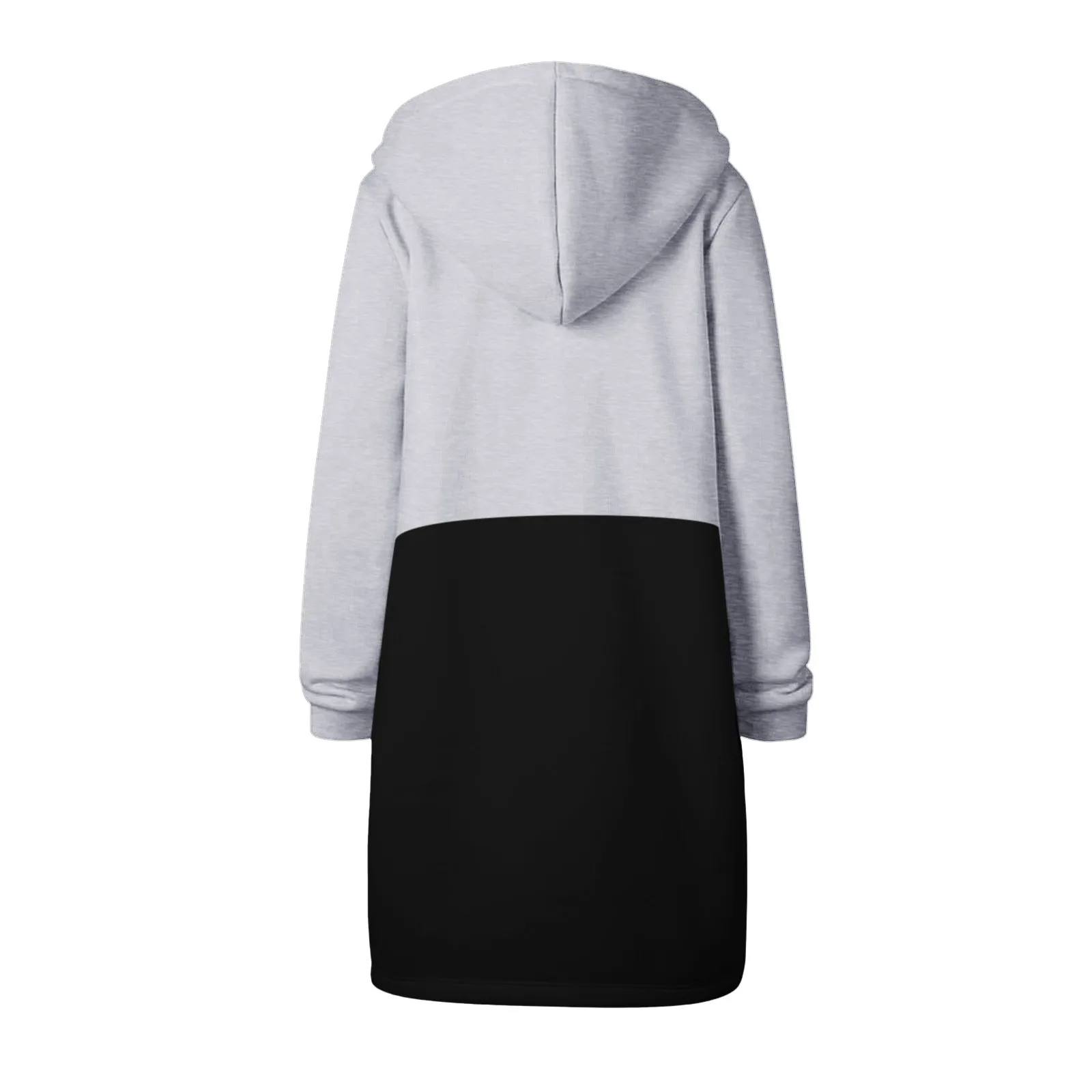 Женская куртка на молнии с капюшоном, двуцветная прямая куртка средней длины с длинным рукавом, осенняя одежда, 2021