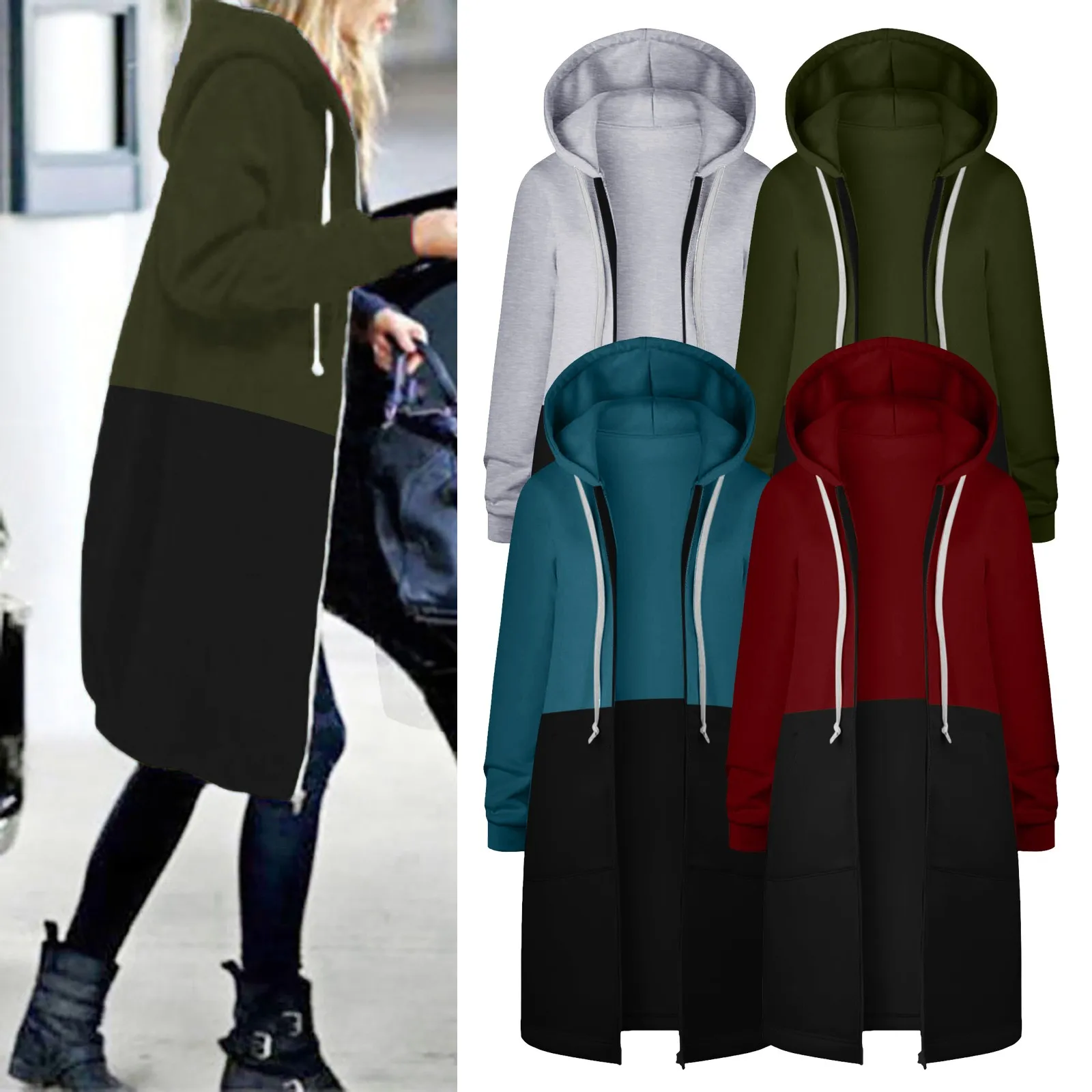 Зимнее длинное пальто, куртка, женская теплая толстовка на молнии с...