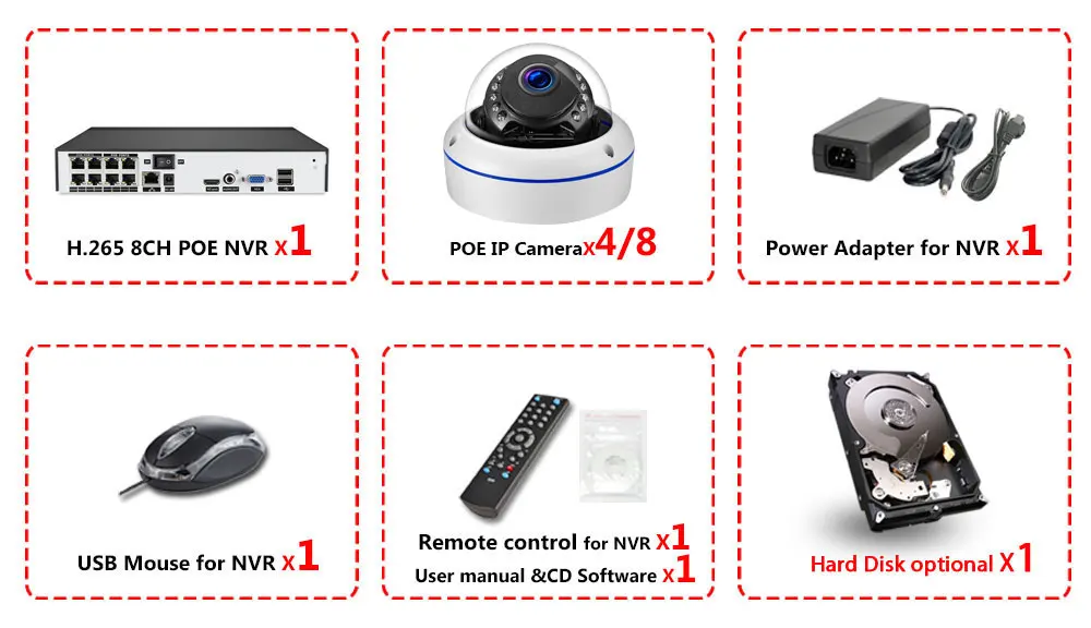 Страна: US Color: 4k 8CH NVR 8PCS cam Plug Type: US plug Build-in HDD: None Доставка: DHL 18.12.2021