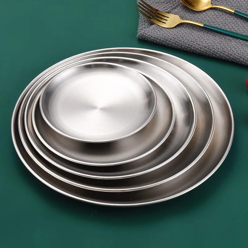 Круглая тарелка из нержавеющей стали, золотой поднос, фотопластина, тарелка для Западной кухни, десертная тарелка, тарелка для барбекю