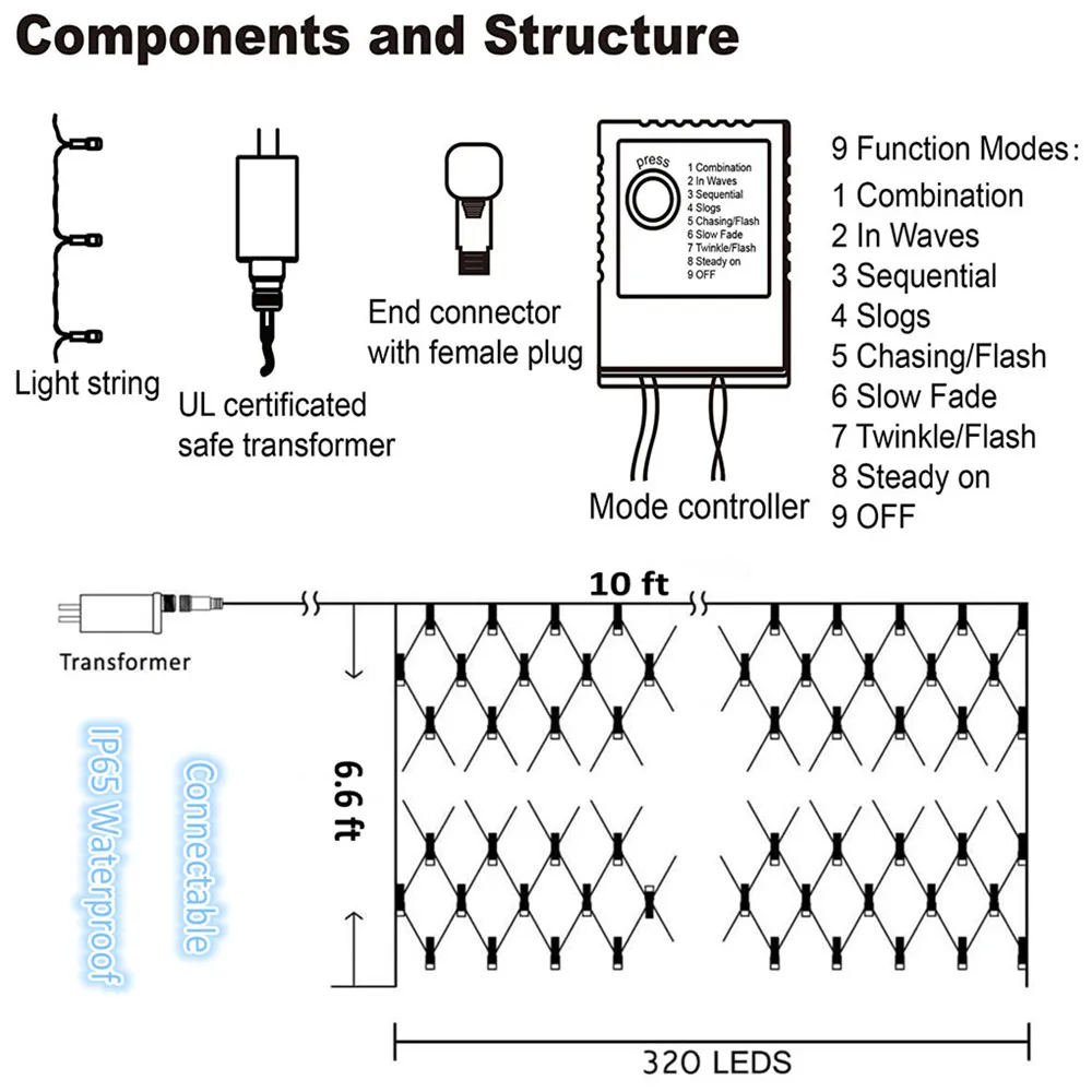 1x IP67 Светодиодные сетчатые гирлянды