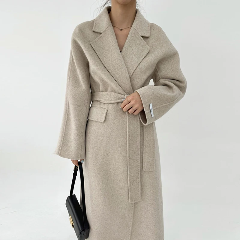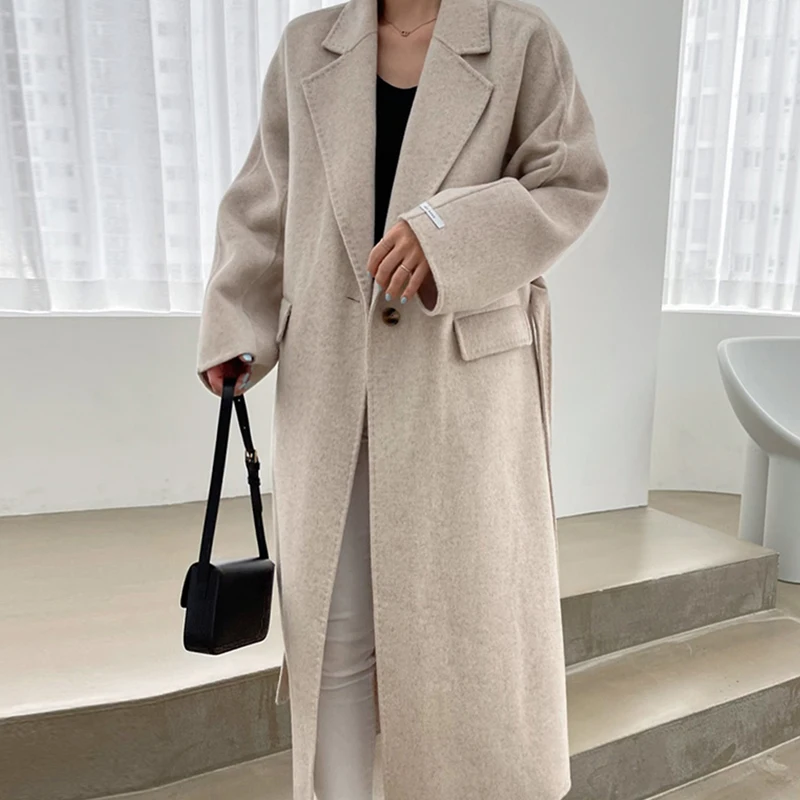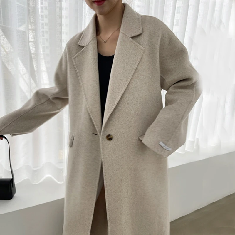 Женское зимнее пальто на одной пуговице, Осень-осень 2021, Женское шерстяное пальто, свободная однотонная женская верхняя одежда с отложным воротником