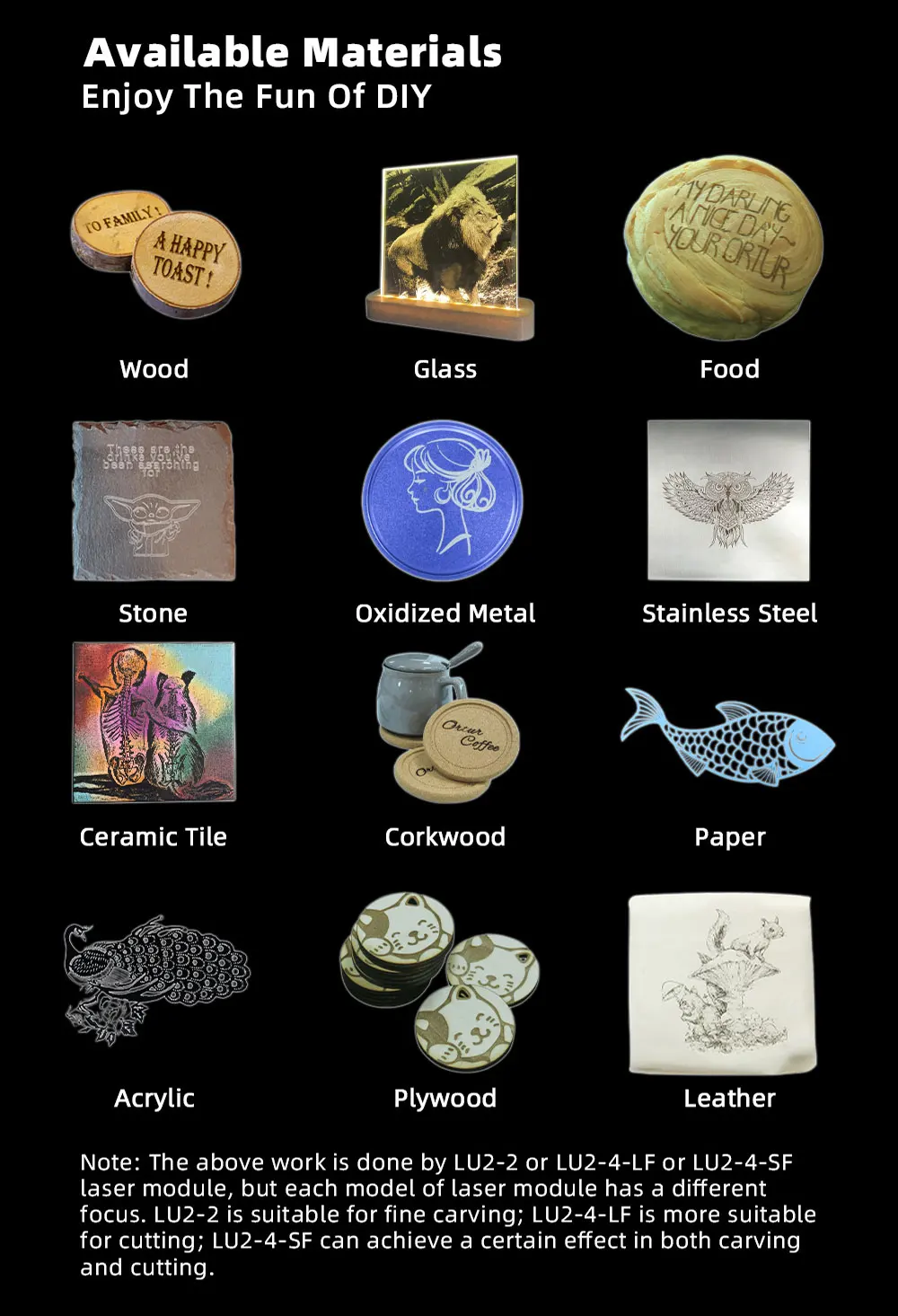 Советы: 1. LU2-4-LF хорошо гравирует и лучше режет, и может поддерживать более высокую скорость.