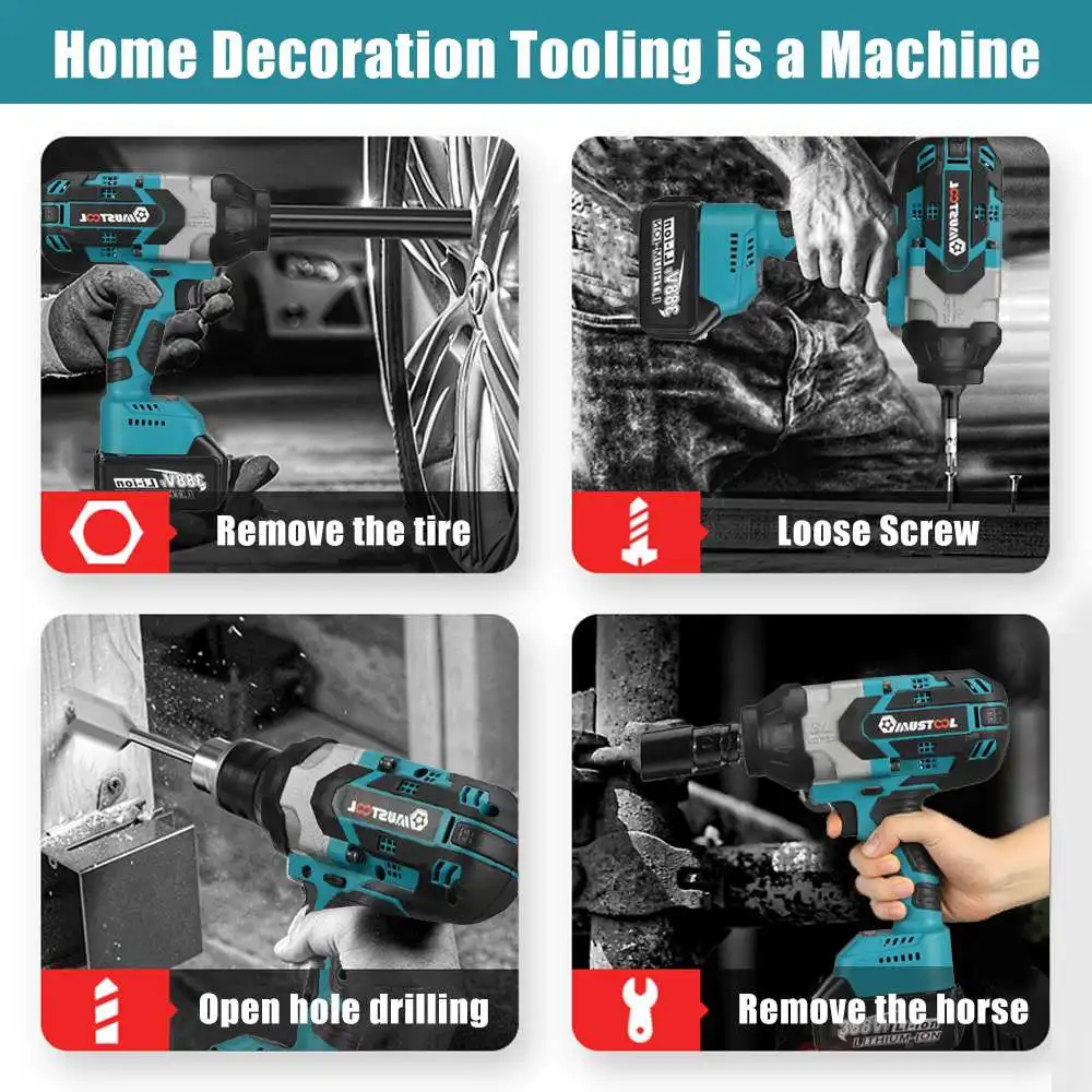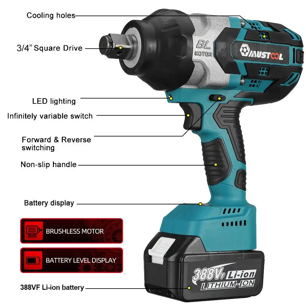 Особенности: С светодиодный светильник, очень удобно работать в темноте-2200N.M высокий крутящий момент, плавный Переключатель изменения скорости.-Мощный электрический гаечный ключ, многоцелевой, супер мощный.-Вал из вольфрамовой стали, высокая твердость и износостойкость.-Подходит для строительных площадок, технического обслуживания, деревообработки и т. Д.-Бесщеточный двигатель не генерирует искры, когда он работает, и двигатель не изнашивается.-Корпус машины также подходит для Makita 18V Батарея