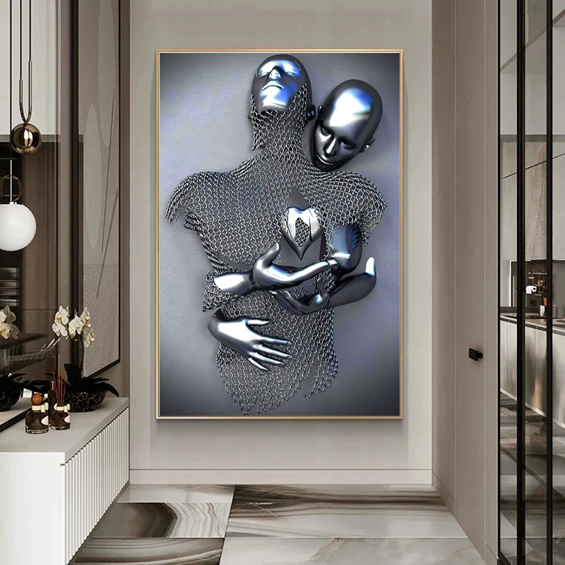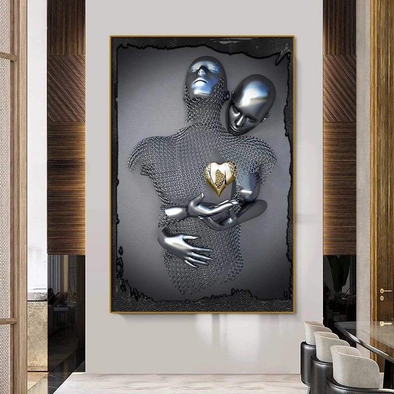 Романтические скульптуры, настенные плакаты, принты для пар, металлическая статуя, художественные принты на холсте, картины на стену для гостиной, домашний декор