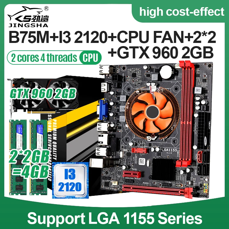 Комплект материнской платы LGA 1155 B75 с процессором GTX960 2 Гб GPU I3-2120 и DDR3 2*2 Гб = 4 Гб ОЗУ для ПК 1333 МГц с комплектом материнской платы с вентилятором процессора