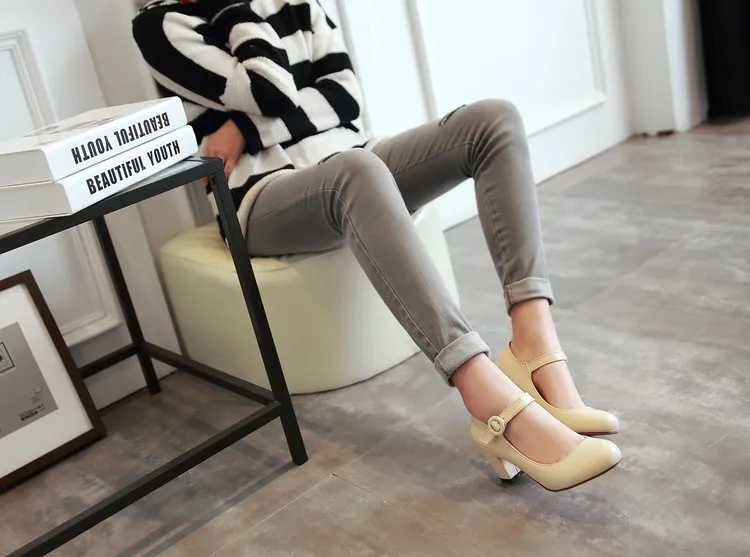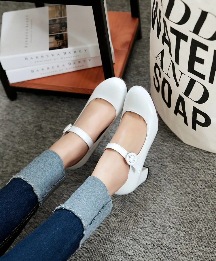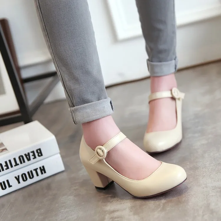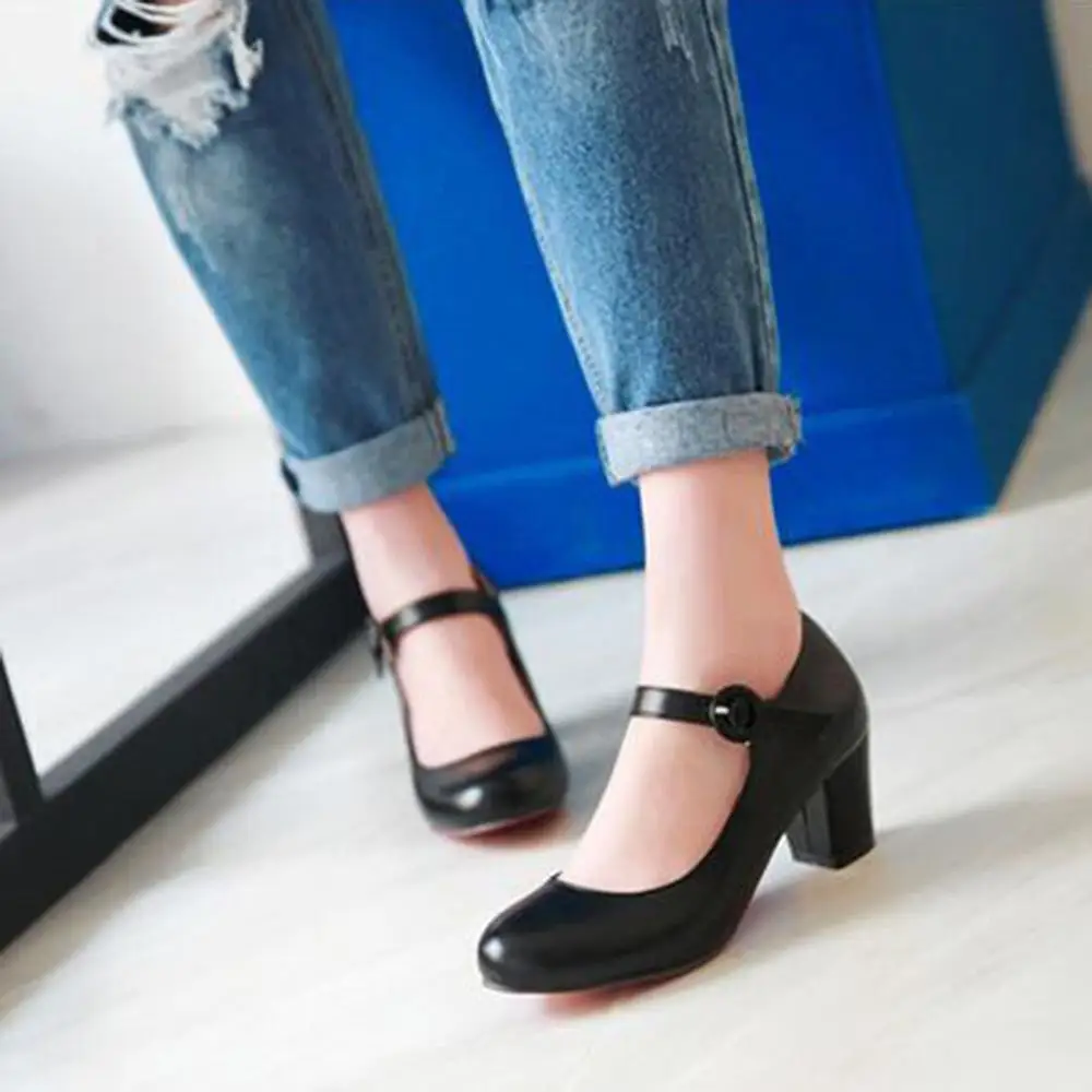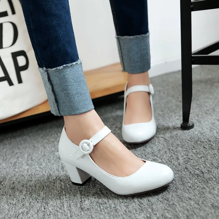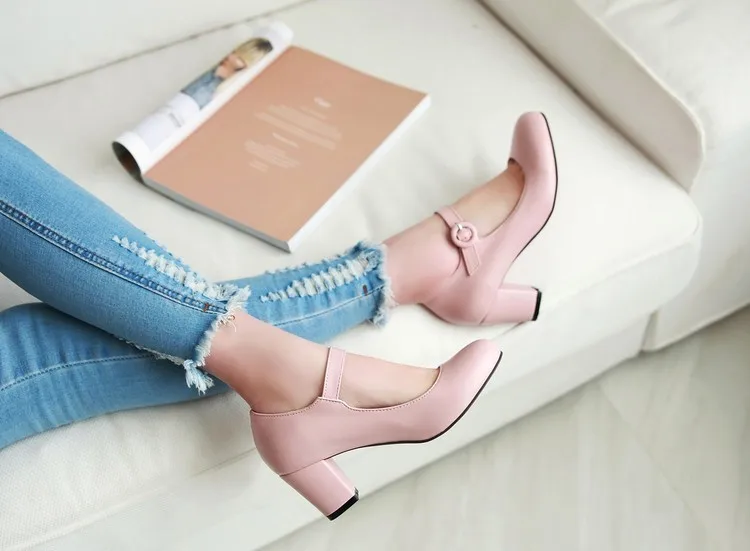 Новинка 2021, женские туфли Мэри Джейн, женские туфли с круглым носком на высоком каблуке, белые свадебные туфли, туфли-лодочки на толстом каблуке, женские туфли черного, розового цветов