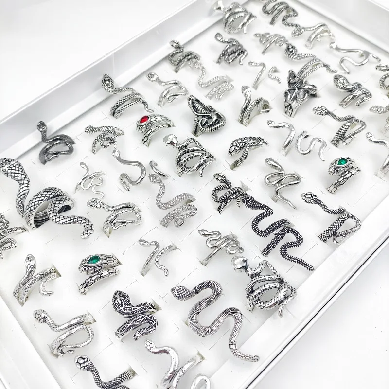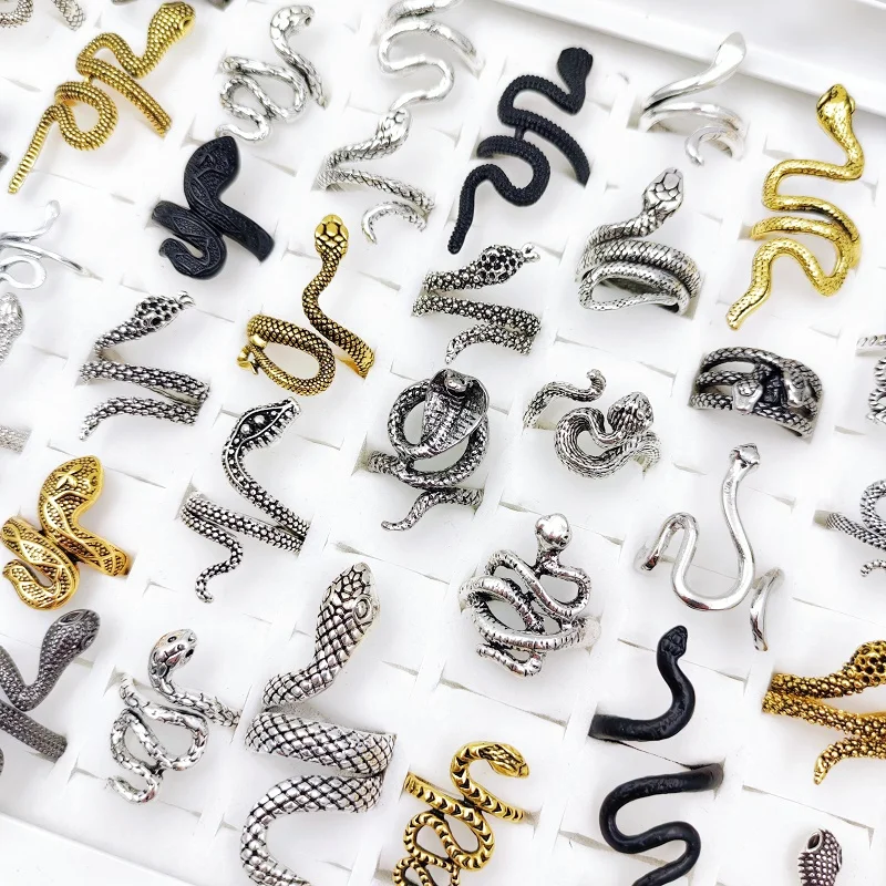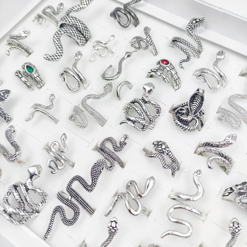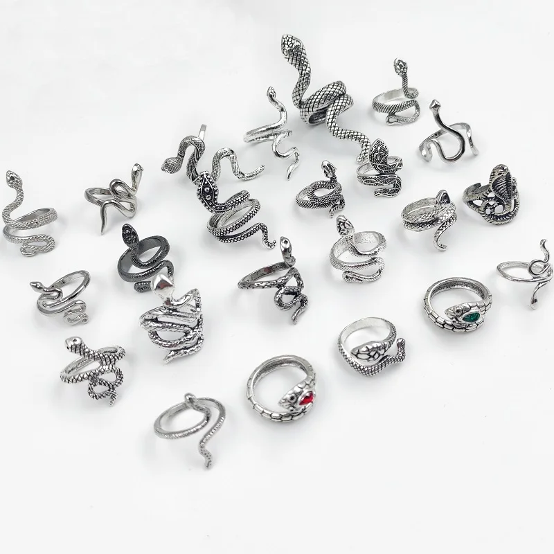 кольцо женское кольцо мужское кольца 2021 тренд готика винтажные кольца 20 штук пакет ретро змея регулируемые кольцами для мужчин и женщин Оптом панк готические античные серебряные кольца ювелирные изделия подарок