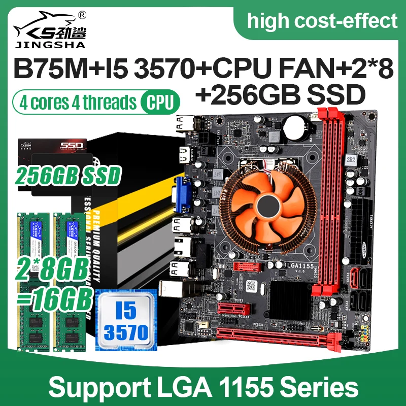 Комплект материнской платы B75M LGA 1155 с процессором I5-3570 и DDR3 2*8 ГБ = 16 Гб ОЗУ для ПК 1333 МГц с кулером процессора 256 ГБ SSD комплект материнской платы