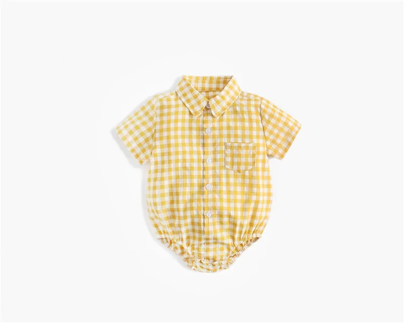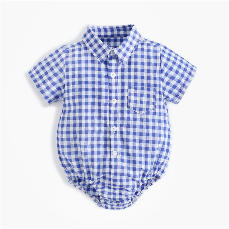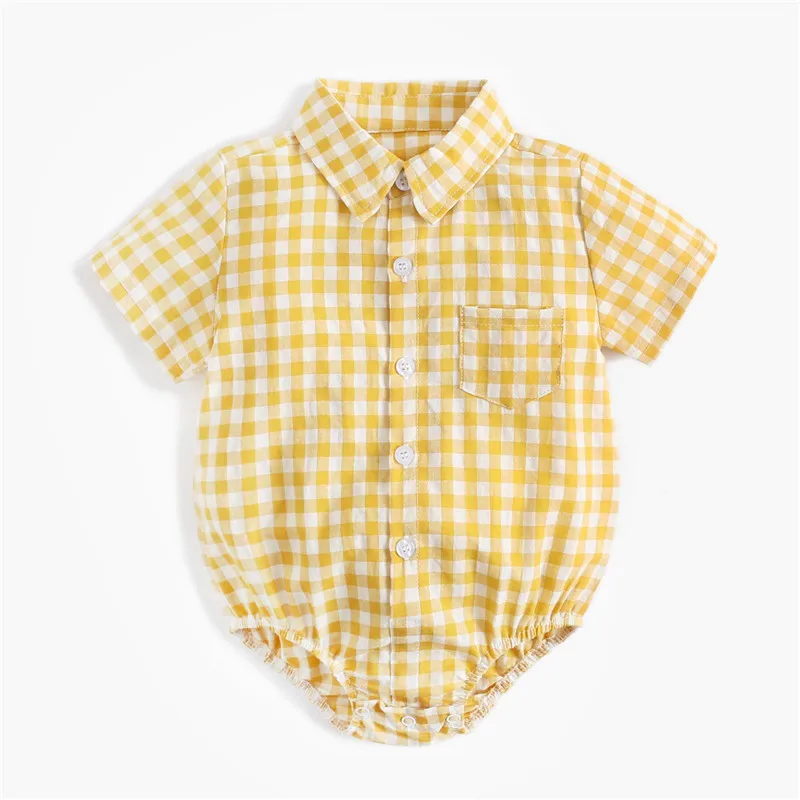 Детский джентльменский комбинезон, рубашка с отложным воротником и короткими рукавами, летний наряд для новорожденных на день рождения, Комбинезоны для маленьких девочек и мальчиков