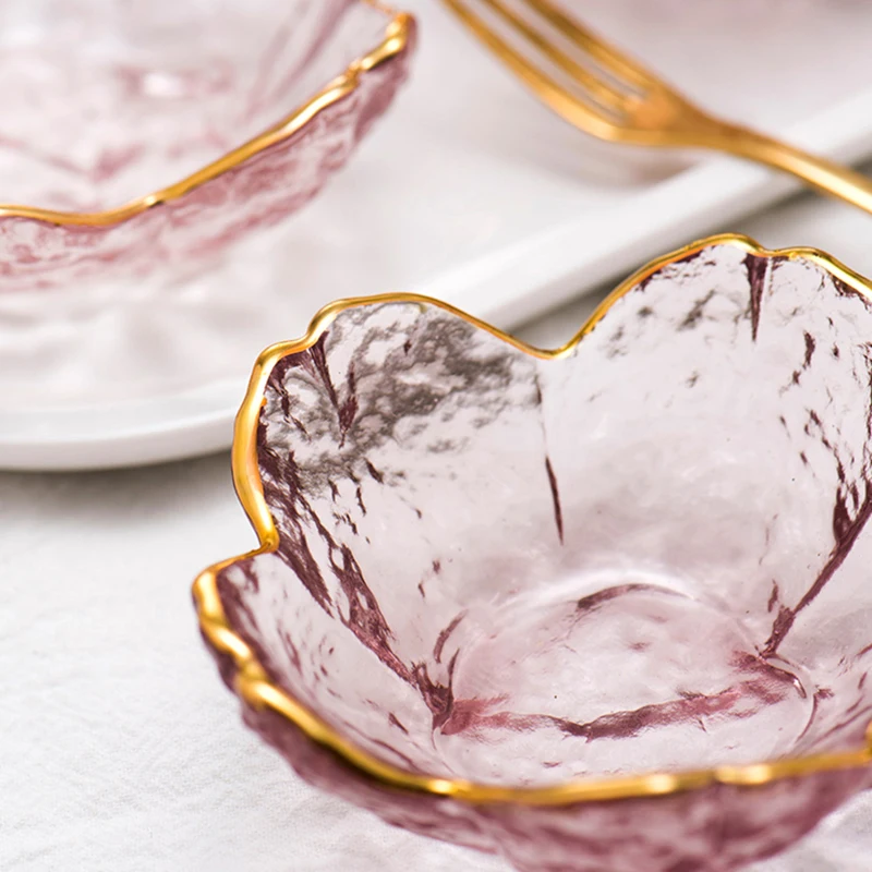 Новая керамическая посуда маленькая стеклянная тарелка Золотая инкрустированная стеклянная чаша для соуса вишневый цвет мороженое фруктовый салат тарелка для приправ