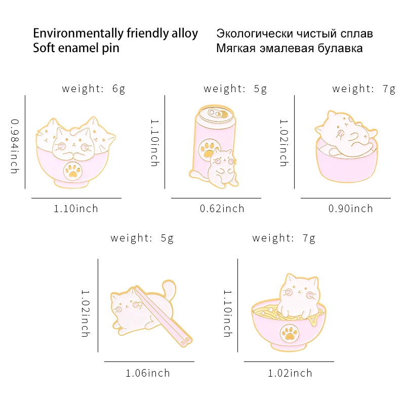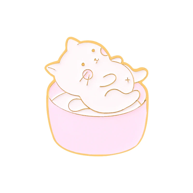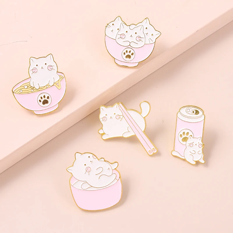 XEDZ модная розовая чаша с рисунком кота, металлическая эмалированная булавка, Милая брошь с бабочкой для напитков Ramen, забавная брошь с отворотом, одежда, ювелирные изделия, подарок для мужчин