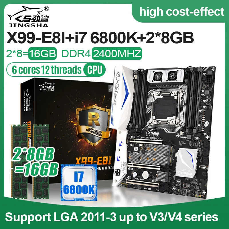 JINGSAH X99 E8I набор материнских плат с i7 6800K LGA2011-3 и 2*8GB DDR4 четырехканальный USB3.0 Поддержка WIFI M.2 Turbo Boost