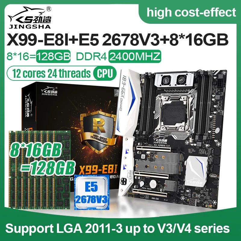Комплект материнской платы JINGSHA X99 E8I с E5 2678V3 и 8 шт. 16 Гб DDR4 2400 МГц ECC REG ОЗУ с поддержкой Turbo Boost