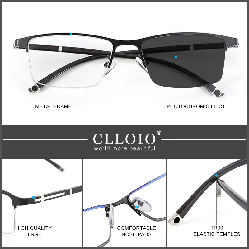 Фотохромные очки для чтения CLLOIO, мужские прогрессивные многофокальные очки для чтения с защитой от сисветильник, очки для чтения TR90 для дальнозоркости и дальнозоркости