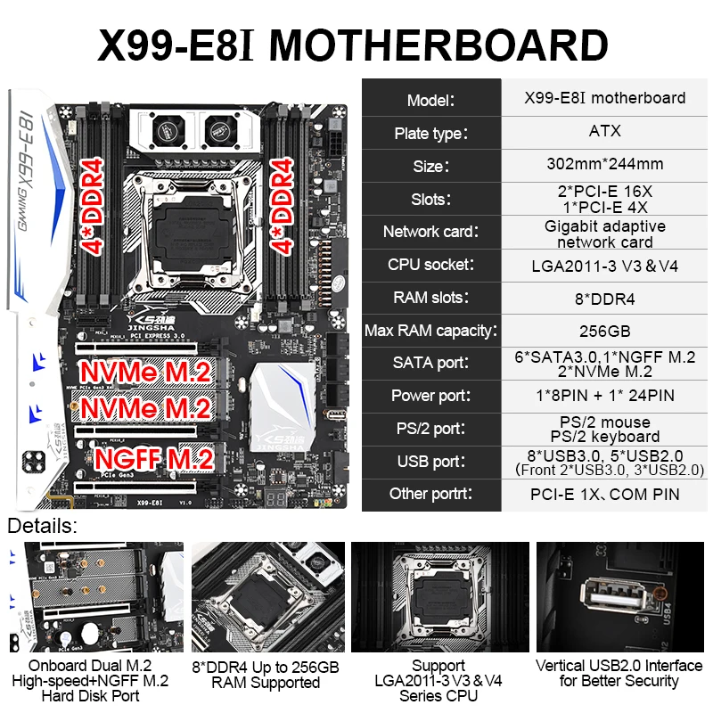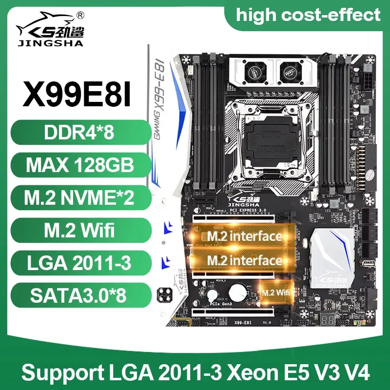 Материнская плата JINGSHA X99 E8I, Поддержка Intel XEON E5 LGA2011-3 DDR4 память ECC REG NVME USB3.0 ATX, Поддержка сервера Turbo boost