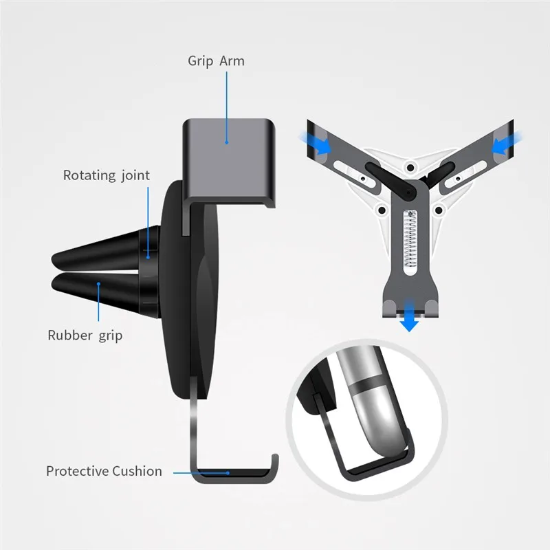 1) поместите телефон на держатель, и он автоматически зажмет.