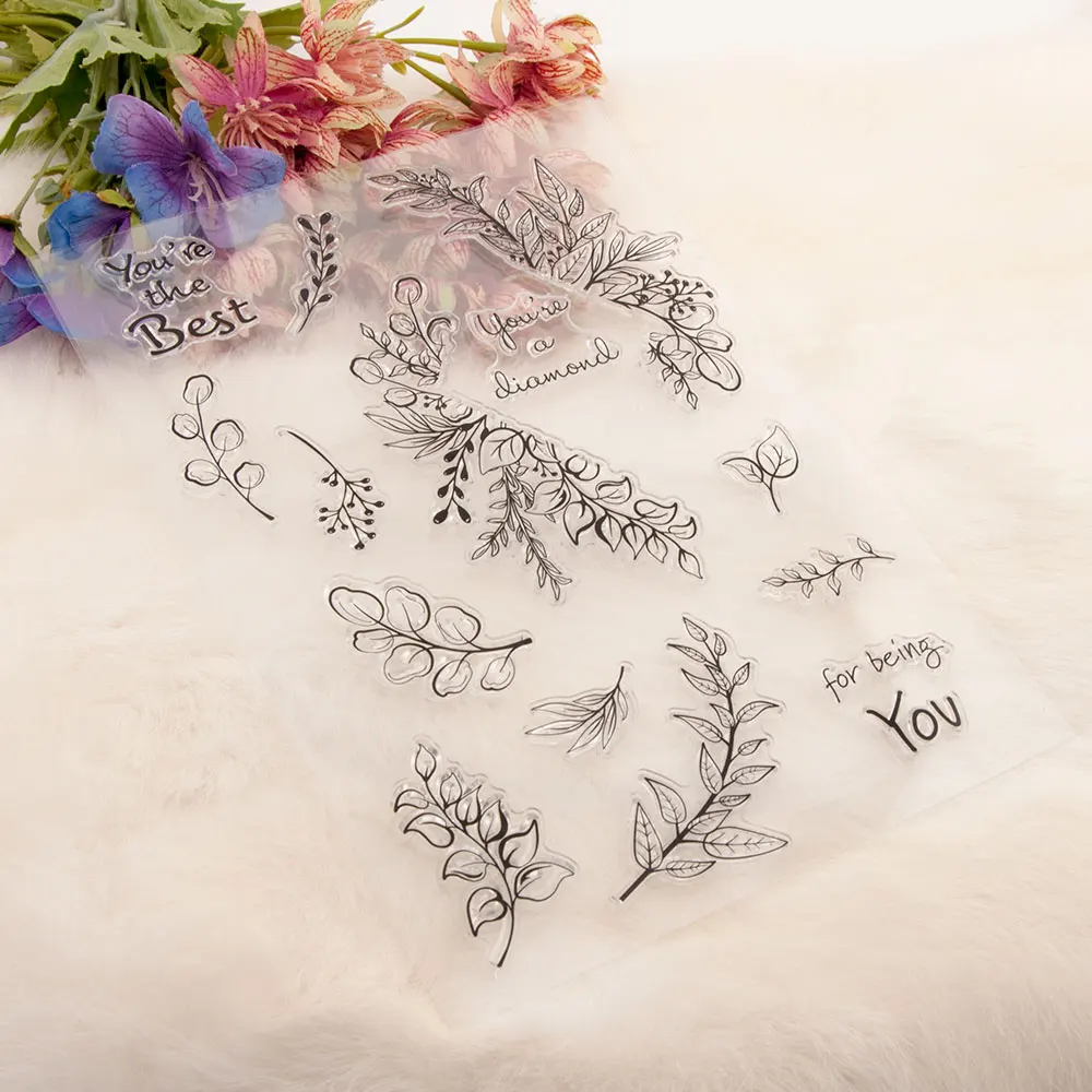 Штампы с прозрачными стеблями и листьями для скрапбукинга и оформления фотоальбомов