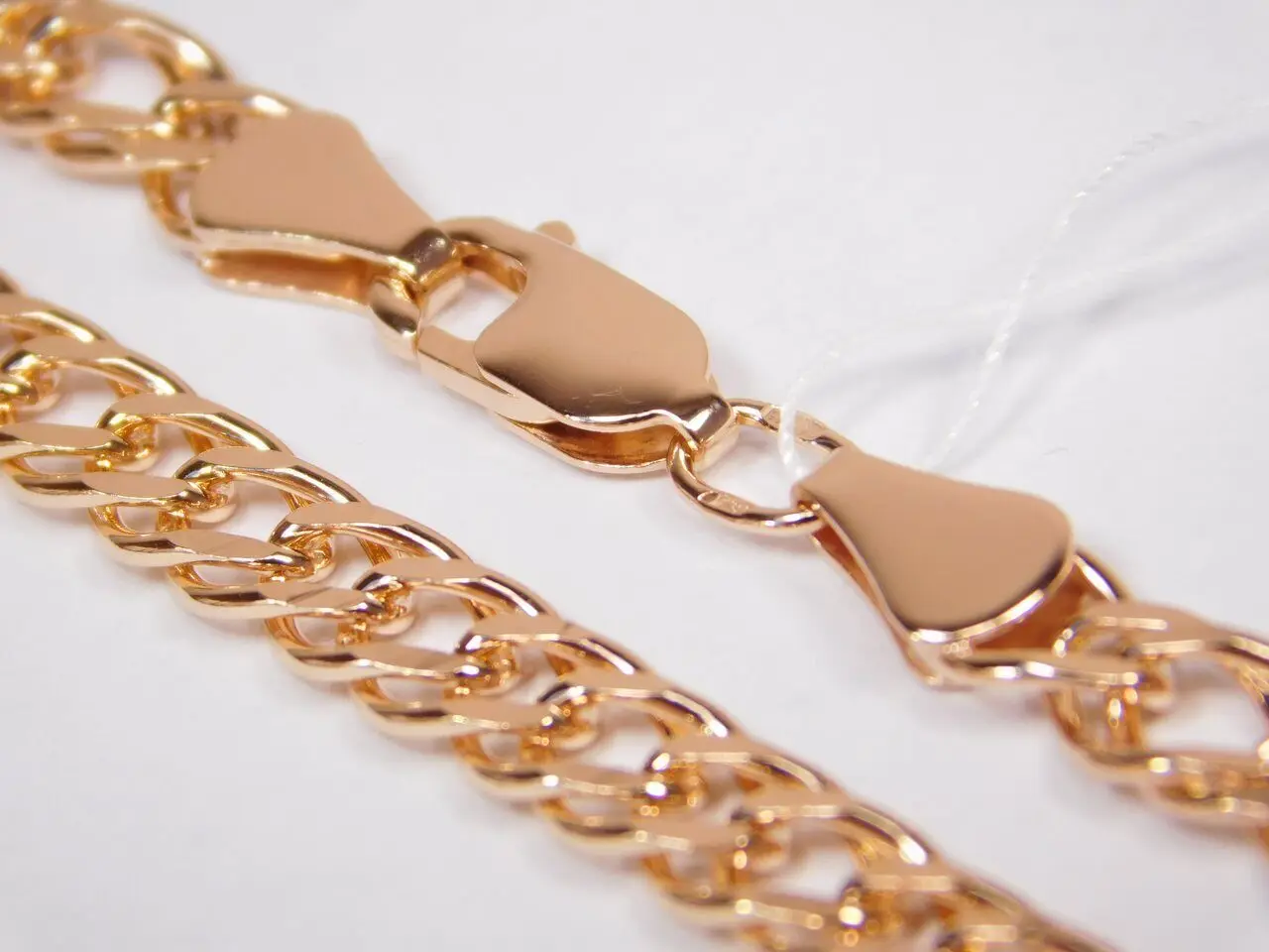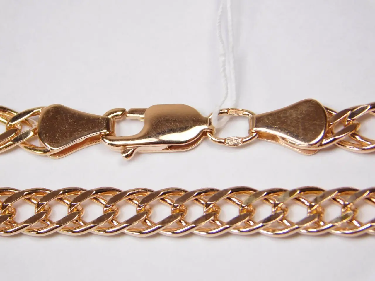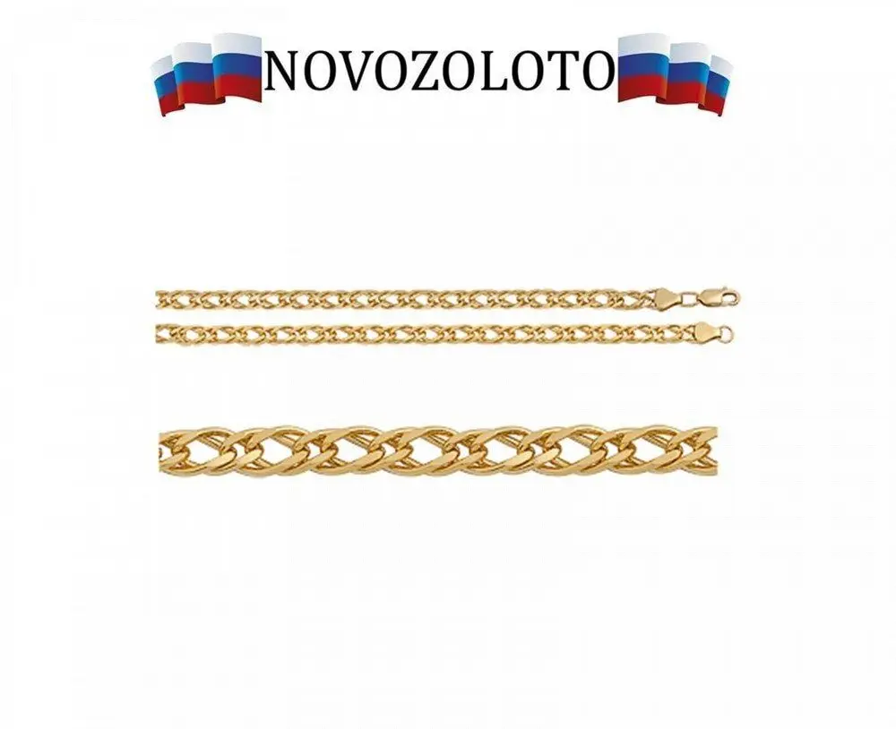Цепь NOVOZOLOTO из подлинного Российского серебра 925 пробы, двойной ромб, золочение.
