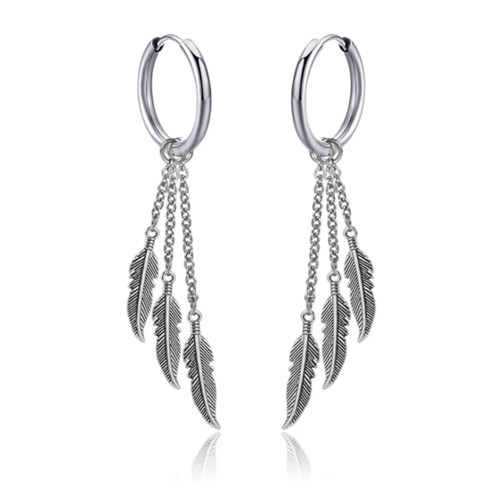 1 ШТ. Старинные Серебряные Перья Листья Кисточкой Хооп Серьги Для Ж...