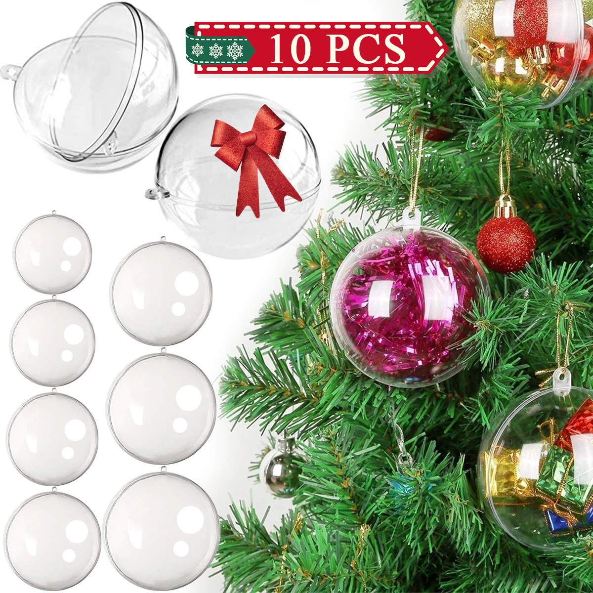 10 шт. прозрачные Заполняемые пластиковые шарики, акриловые елочные украшения, шарики сделай сам, подвесные подарочные коробки, декор для свадьбы, вечеринки, сада