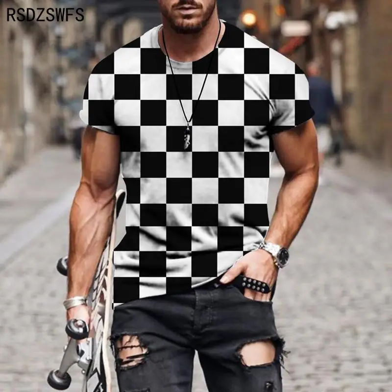 Футболка мужская летняя с 3D-принтом, крутая дышащая Повседневная рубашка с короткими рукавами, в стиле ретро, в клетку