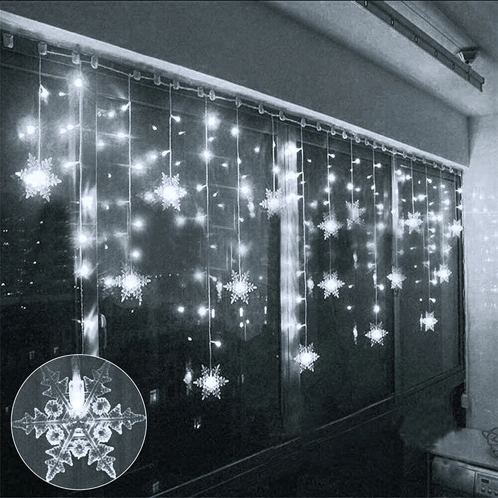 Рождественская гирлянсветильник-занавес из снежинок, уличная декора...