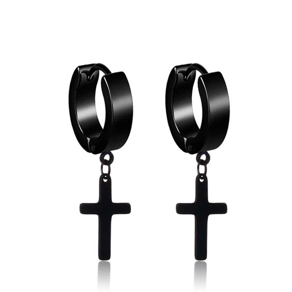 Черные серьги, Винтажные серьги, серьги с крестом, серьги в стиле панк, мужские серьги, серьги из нержавеющей стали, женские мужские серьги