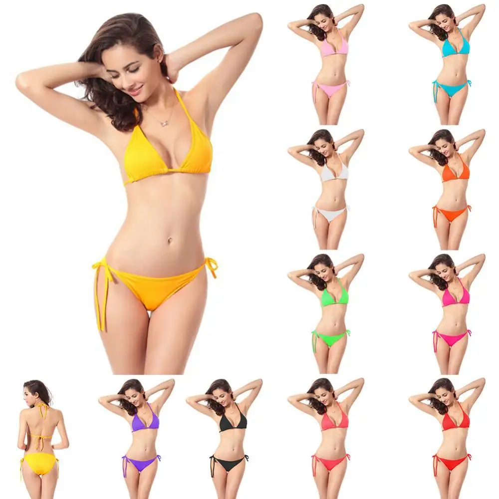 Купальник женский, купальный костюм, треугольный комплект бикини, купальник, летний женский бандажный комплект бикини с лямкой на шее, купальник из двух предметов, купальник