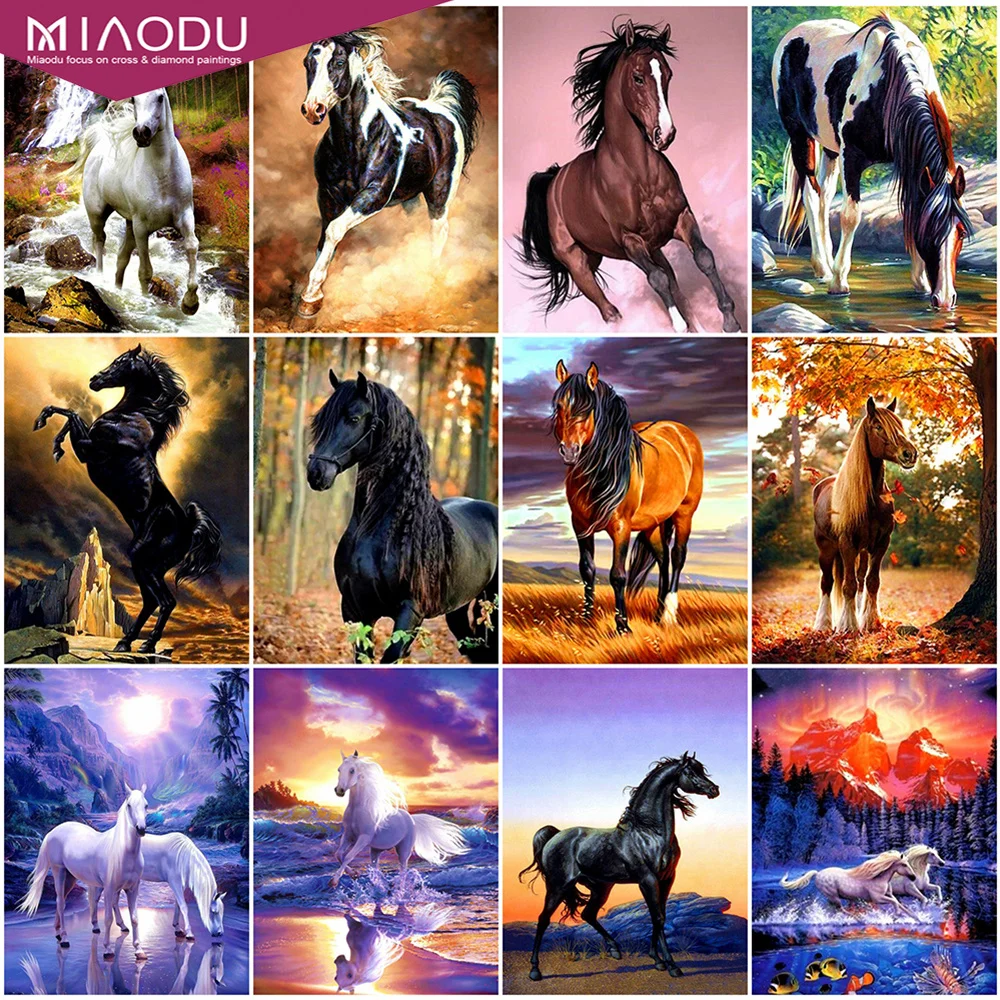 Алмазная живопись "сделай сам", вышивка с изображением лошади, соба...