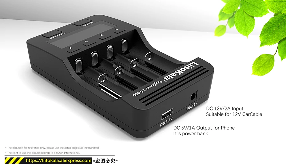 Описание заказаLii-500 Зарядное устройство: только Lii-500 зарядное устройствоLii-500 и адаптер: Lii-500 зарядное устройство + 12V/2A адаптер + ИнструкцияПолный комплект Lii-500: Lii-500 зарядное устройство + адаптер 12 В/2 А + Автомобильный Кабель 12 В + руководствоПримечание: результаты теста на Lii-500S зарядное устройство приведены только для справки и не являются профессиональными.Вход: 12 В/2 а постоянного тока (мин.)Выход заряда: li-ion 4,2 V 300mA/500mA/700mA/1000mA * 4Ni-MH/Cd 1,48 V 300mA/500mA/700mA/1000mA * 4Предельное напряжение зарядки: литий-ионный аккумулятор 4,2 ± 0,05 VРазрядки ток на выходе: 500mA среза литий-ионный аккумулятор 2,8 V/никель-металл-гидридного 0,9 VНапряжение на выходе USB: 5В 1000mA (только с li-ion 3,7 V аккумулятор вставлен)Для размеров батарей: диаметр 8 мм-26 мм; Высота 34 мм-71 ммNiMH/Cd AAA/Micro, AA/Mignon, C/ Bady, Sub- C, ALi-Ion 26650, 22650, 18650,18490, 18500,17500, 17355, 16340(RCR123), 14500, 10440Размеры: Д * Ш * В/162*96*36 ммВес: 441 г (включая коробку)