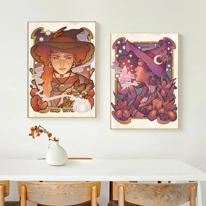 Постер с классическими ведьмами, постеры на холсте с волшебной деву...