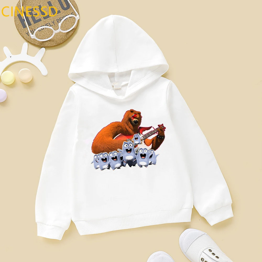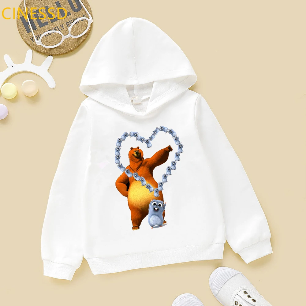 Одежда для мальчиков и девочек, топ, осенне-зимний свитшот с забавным мультяшным принтом Grizzy And The lemings, плюс бархатные белые пуловеры с капюшоном