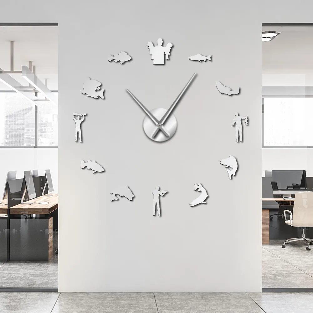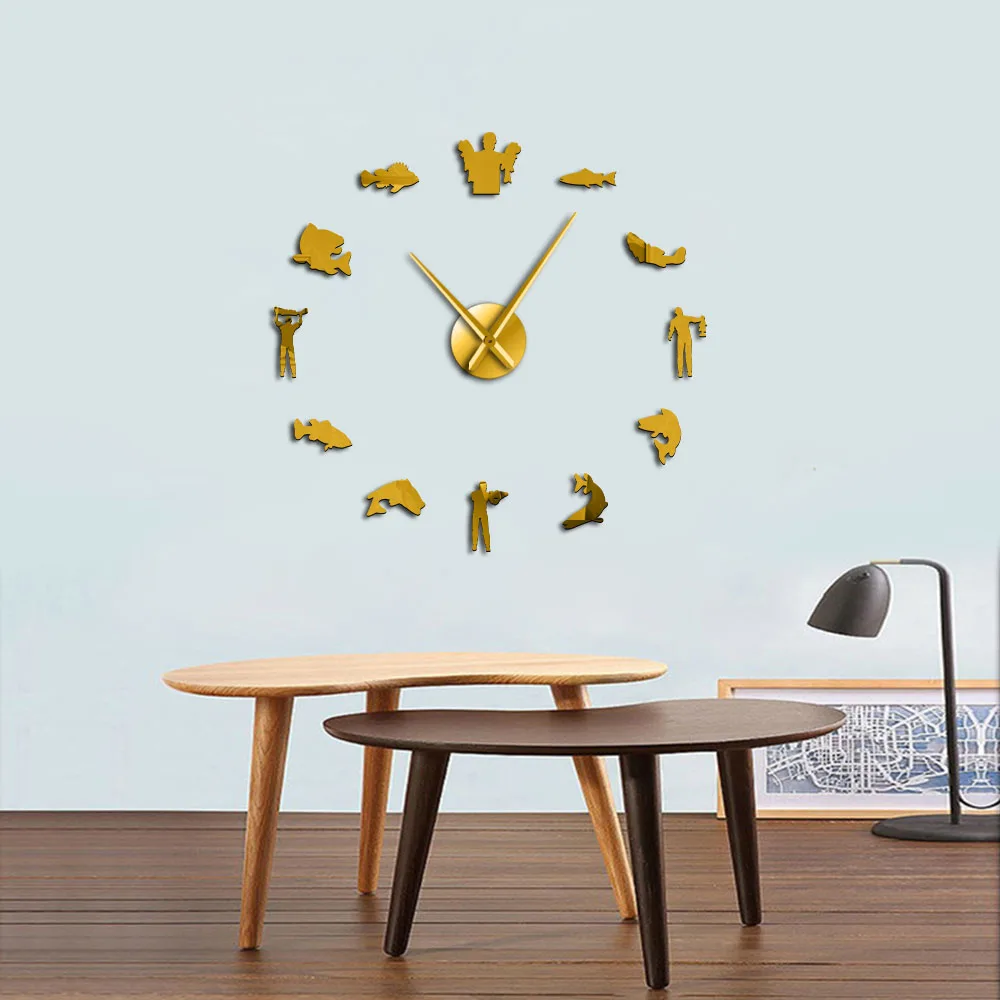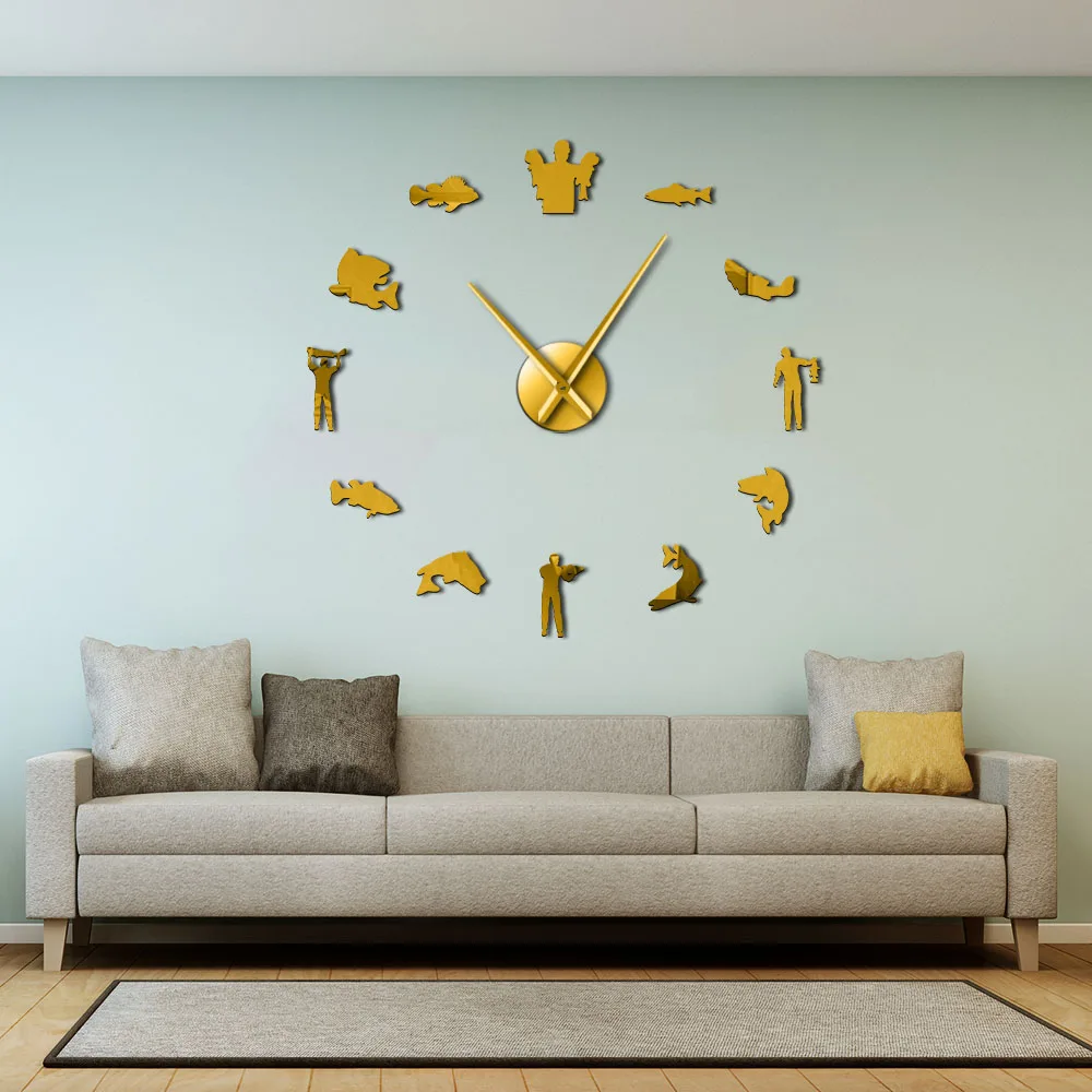 Настенные часы для рыбалки сделай сам, акриловые настенные украшения с зеркальным эффектом, для рыбаков, рыбаков, украшение для стен в спальню, папа, дедушка