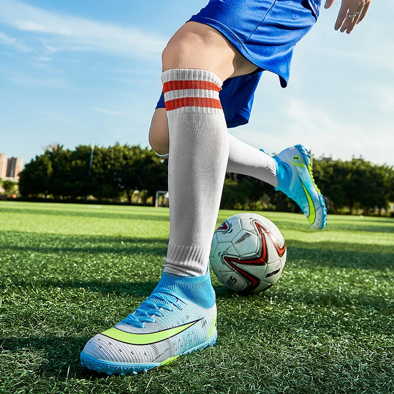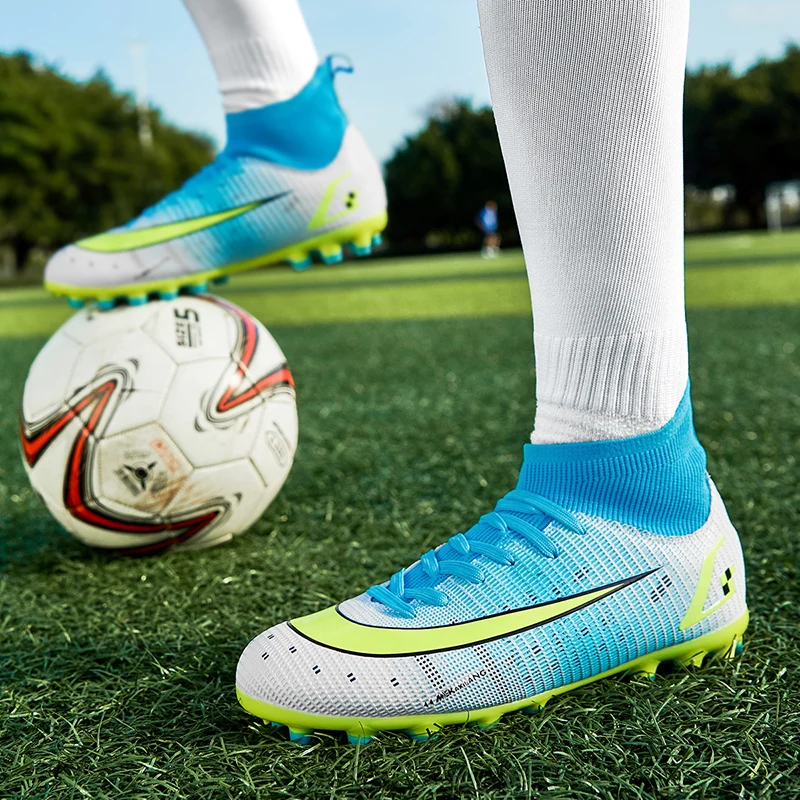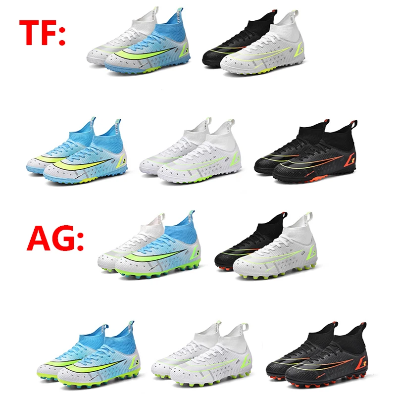 Высокие футбольные бутсы мужские футбольные бутсы тренировочные высокие дышащие спортивные кроссовки AG TF уличные двухцветные размеры 36-46