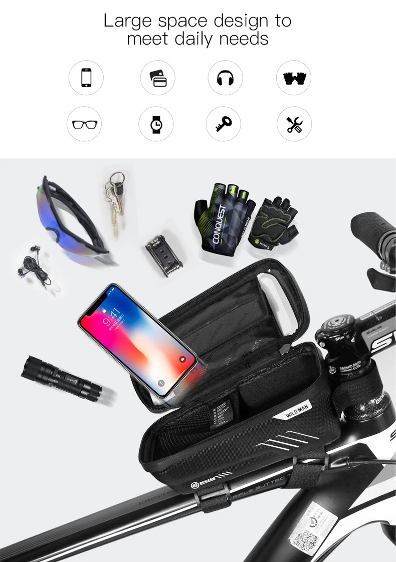 Велосипедная Рама WILD MAN, передняя сумка, водонепроницаемая верхняя труба, Велосипедный Чехол для телефона, сумка для сенсорного экрана, сумка для горного велосипеда, Портативные велосипедные аксессуары