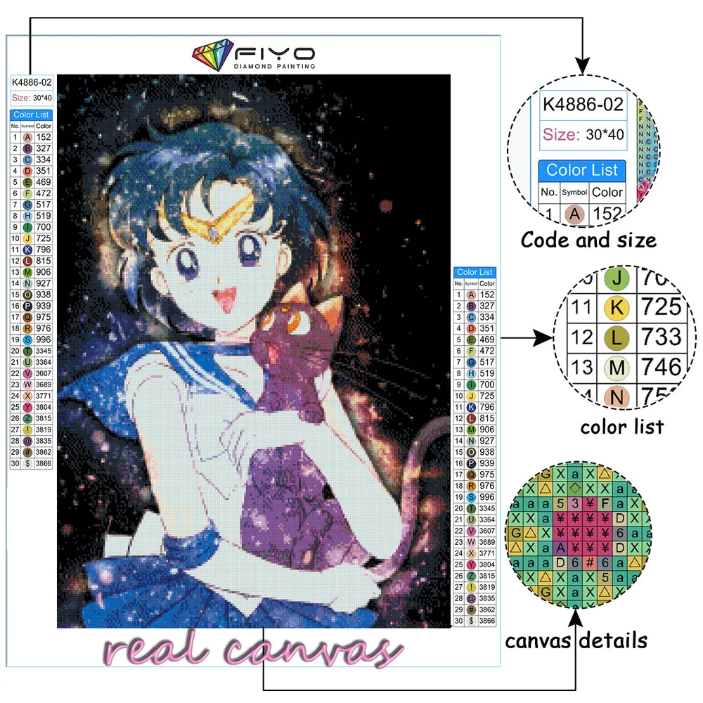 Алмазная живопись 5D сделай сам, аниме матрос Муна, вышивка крестик...