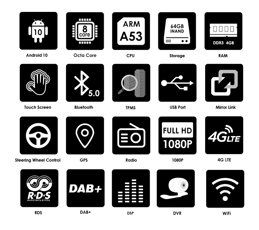 Автомагнитола мультимедийная, Android 10, 4 Гб ОЗУ, 64 Гб ПЗУ, виде...