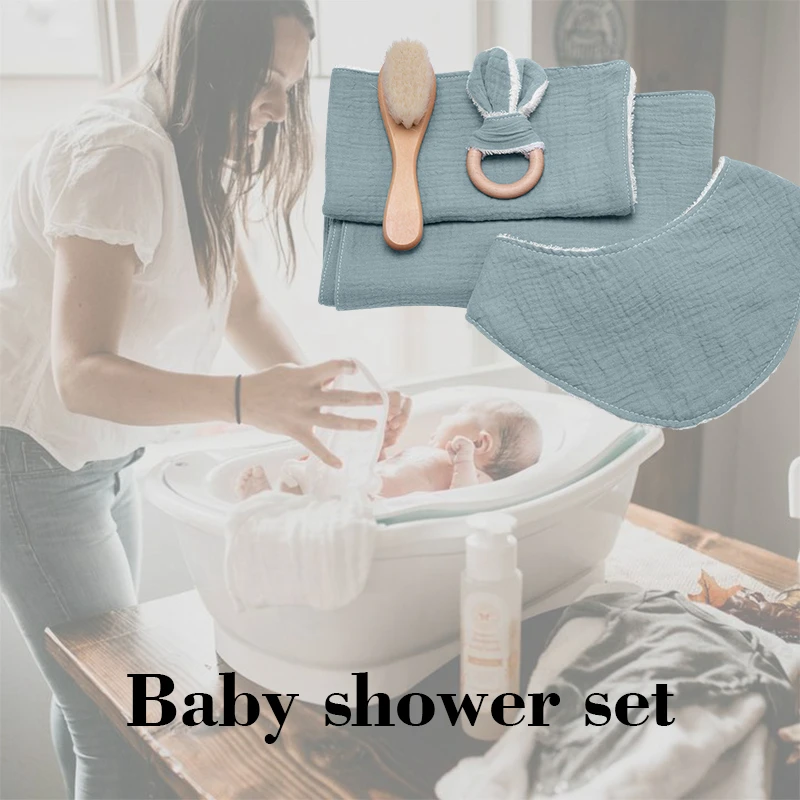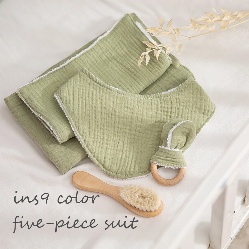 Детское полотенце, набор игрушек для купания новорожденных, Подарочная коробка, двухстороннее Хлопковое одеяло, деревянный браслет-погремушка, вязаные игрушки, детский подарок для ванной