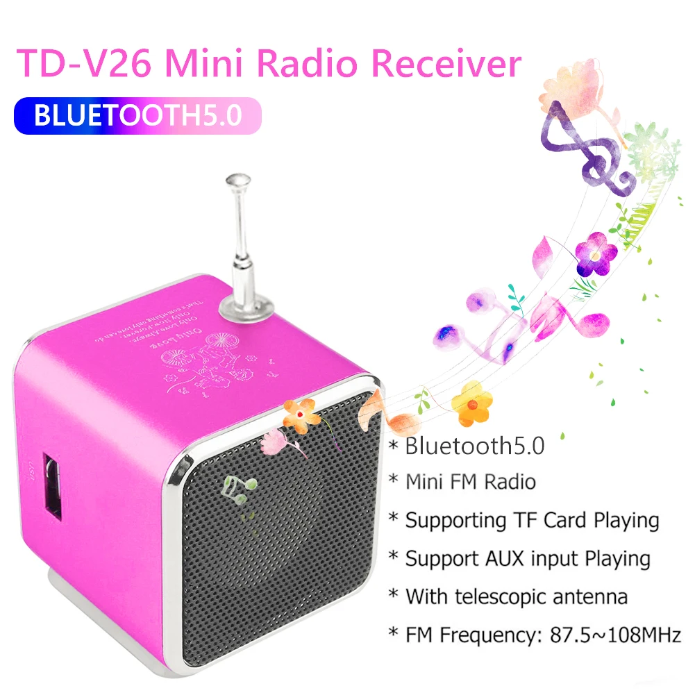 TD-V26 мини-динамик Bluetooth-совместимый 5,0 FM-радиоприемник mp3-...