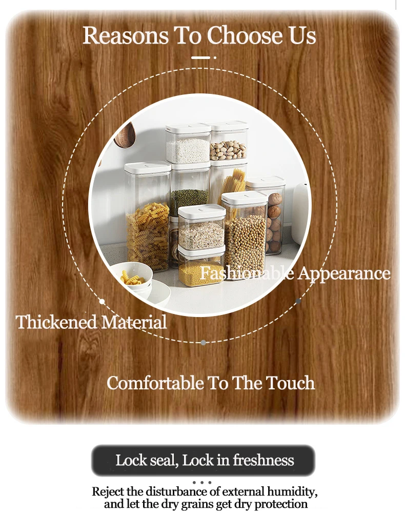 Название продукта: легко застегивать Герметичные банкиМатериал изделия: крышка-ПП + силикон, корпус-ПЭТИспользование продукта: используется для хранения закусок, сухих товаров, различных зерен и других предметов, запечатанных и сохраненных свежихОсобенности продукта: прозрачный корпус бака, герметичная Герметичная крышка, легко моетсяПрименимая сцена: кухня. Гостиная. Балкон. Спальня