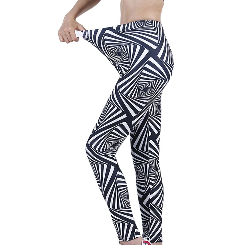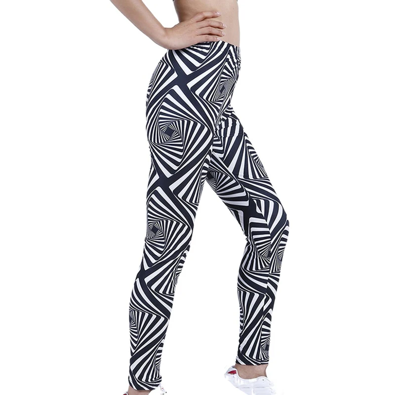 Леггинсы CHSDCSI с высокой талией, пикантные белые черные легинсы в стиле панк с геометрическим принтом, повседневные штаны с эффектом пуш-ап для фитнеса, из спандекса