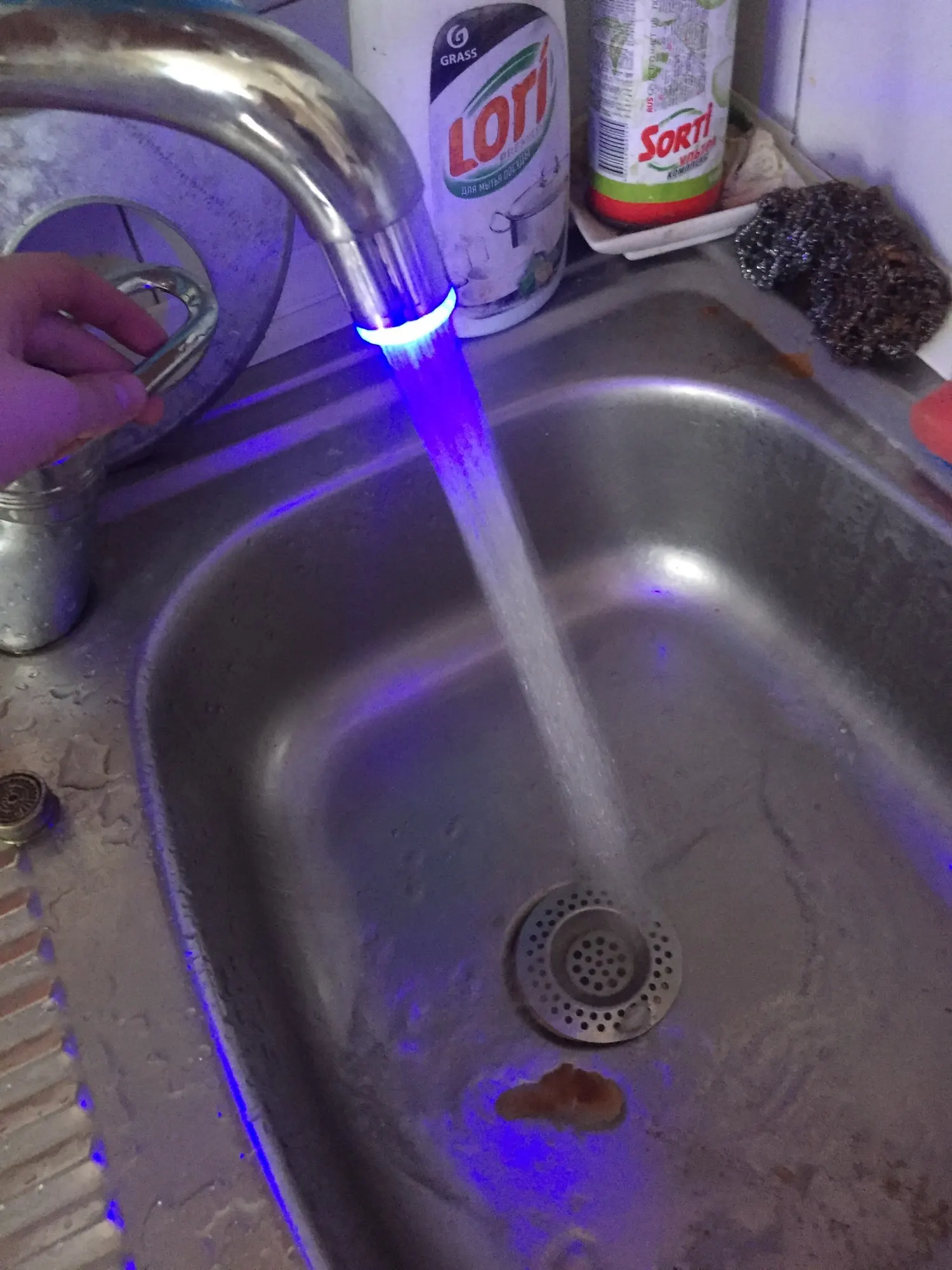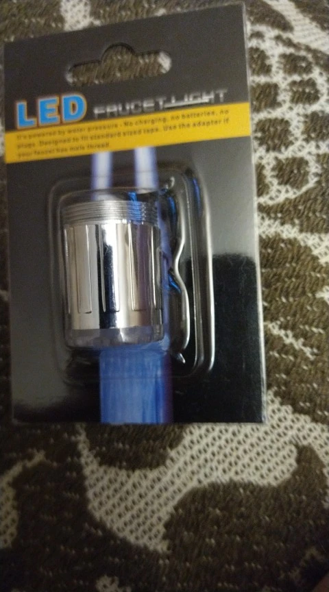 Это маленькое устройство подходит для большинства кранов и загорается набором светодиодов при включении крана.