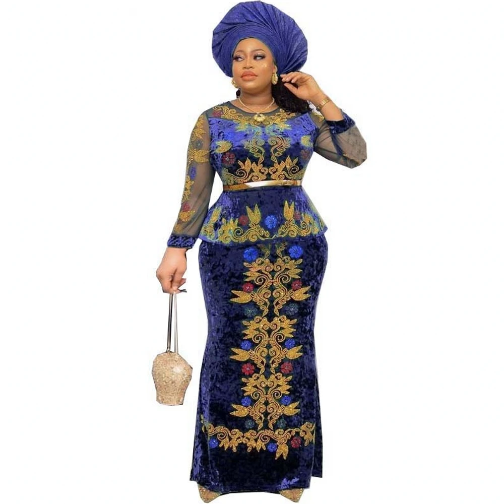 Бархатные африканские платья для женщин Дашики халат с длинным рука...