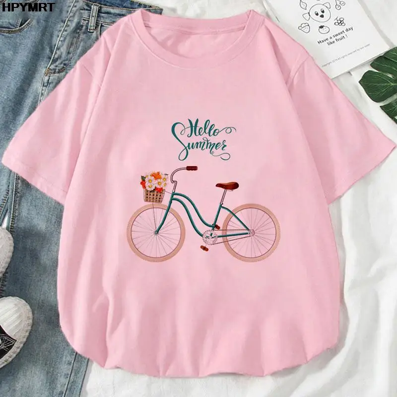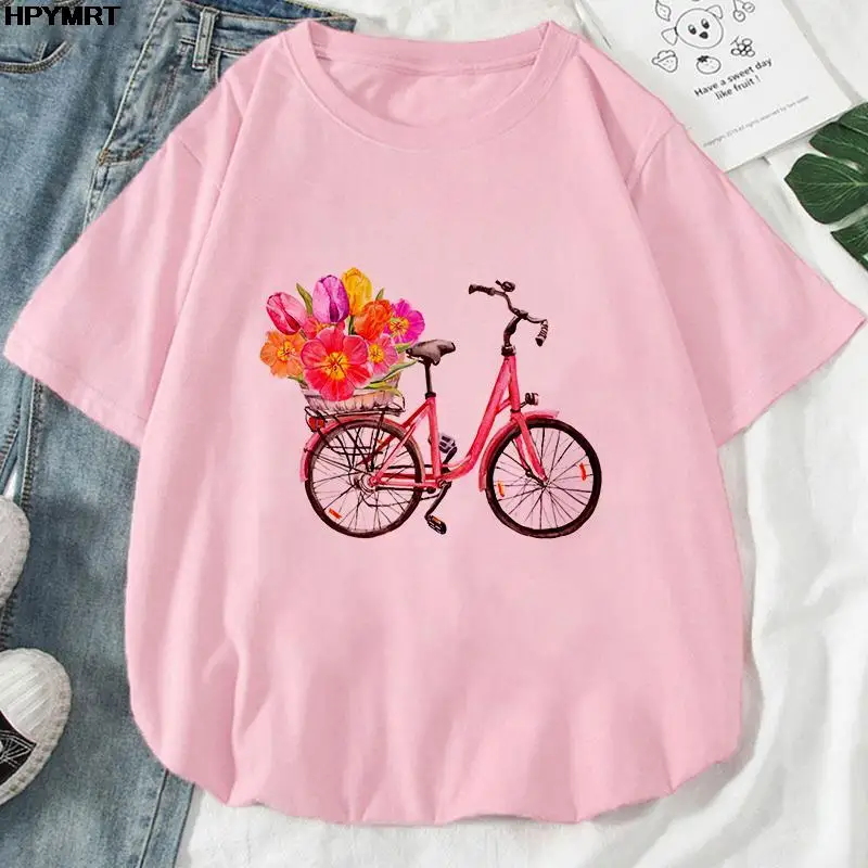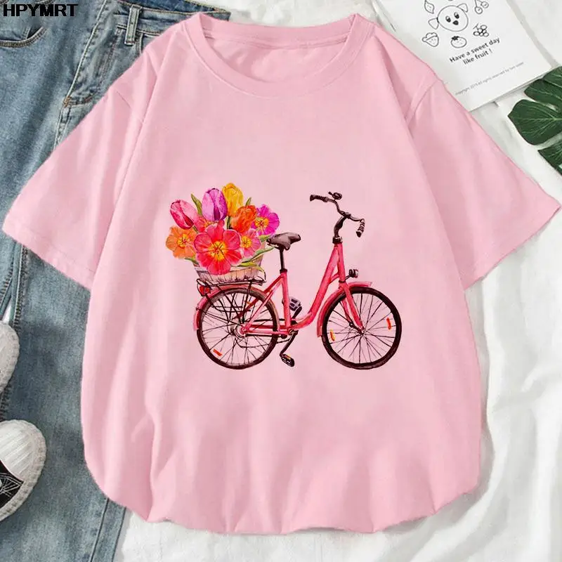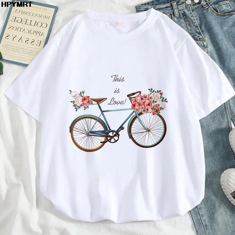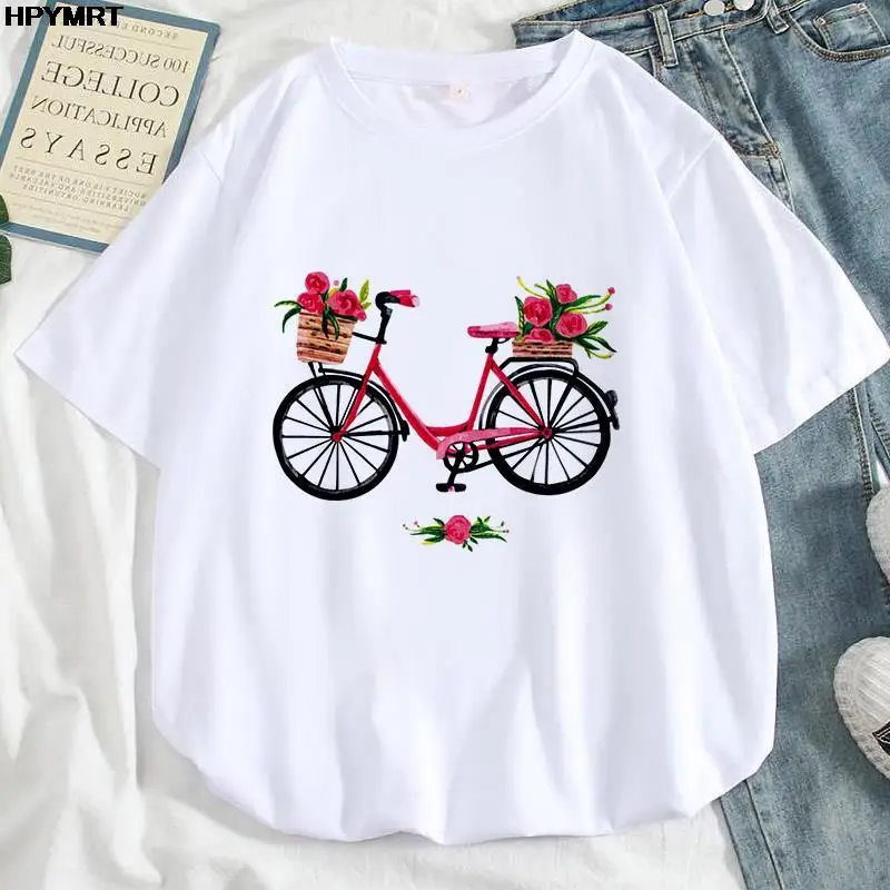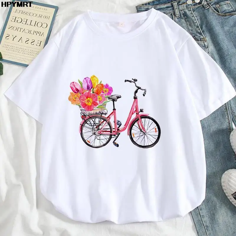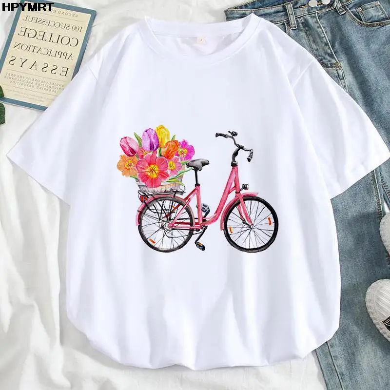 Женская футболка с коротким рукавом и принтом в виде цветка велосип...