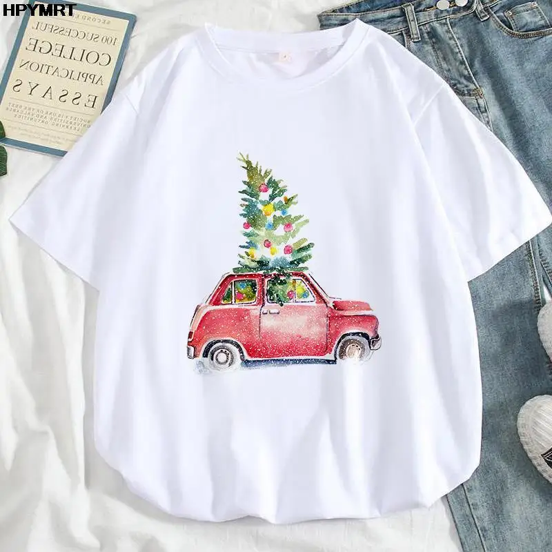 Футболка женская мода с Рождеством Христовым Harajuku с коротким ру...