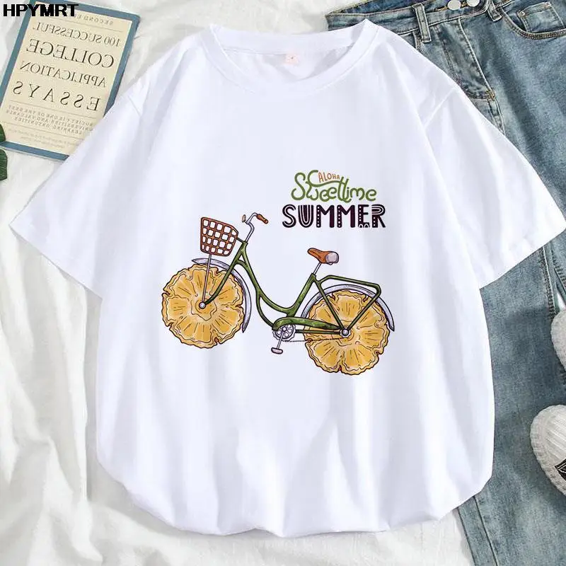 Женская футболка Harajuku, Белая Летняя футболка с морским принтом,...