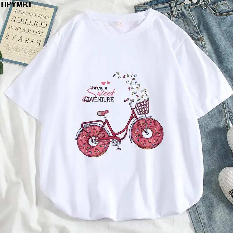 Футболка женская с графическим принтом, Модный повседневный топ в Корейском стиле, в стиле Харадзюку, женская одежда с графическим принтом