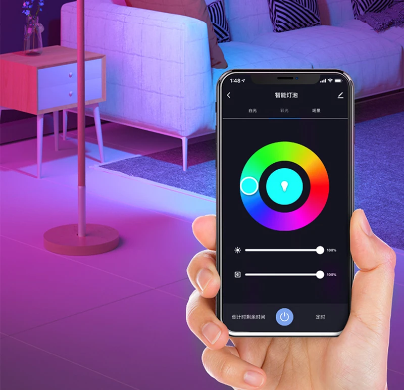 Продолжайте подключать эту смарт-лампочку Wi-Fi к домашней сети (поддерживает только Wi-Fi 2,4 ГГц), вы можете удаленно управлять умной лампочкой на вашем смартфоне, имитируя, когда вы выходите из дома, В доме есть люди. Функция группового управления позволяет одновременно управлять несколькими умными лампочками для настройки сцены.